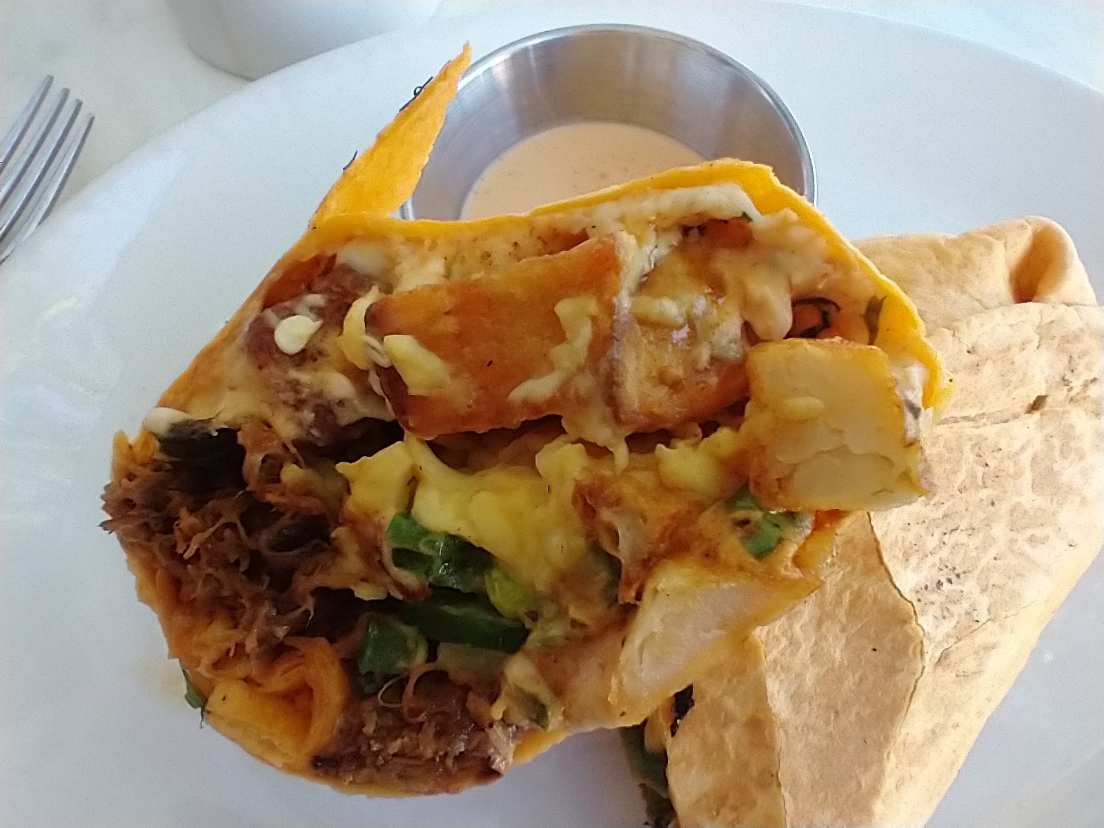 This was our first time at Polonzo Bistro, and, while I intended to have a omelette, I ended up getting the Braised Pork breakfast burrito. I asked for fresh jalapeño instead of the poblano, because I wanted more spice. Our waiter, Joseph, was very accommodating and truly made us feel like he wanted us to be happy, so communicated with us a lot.