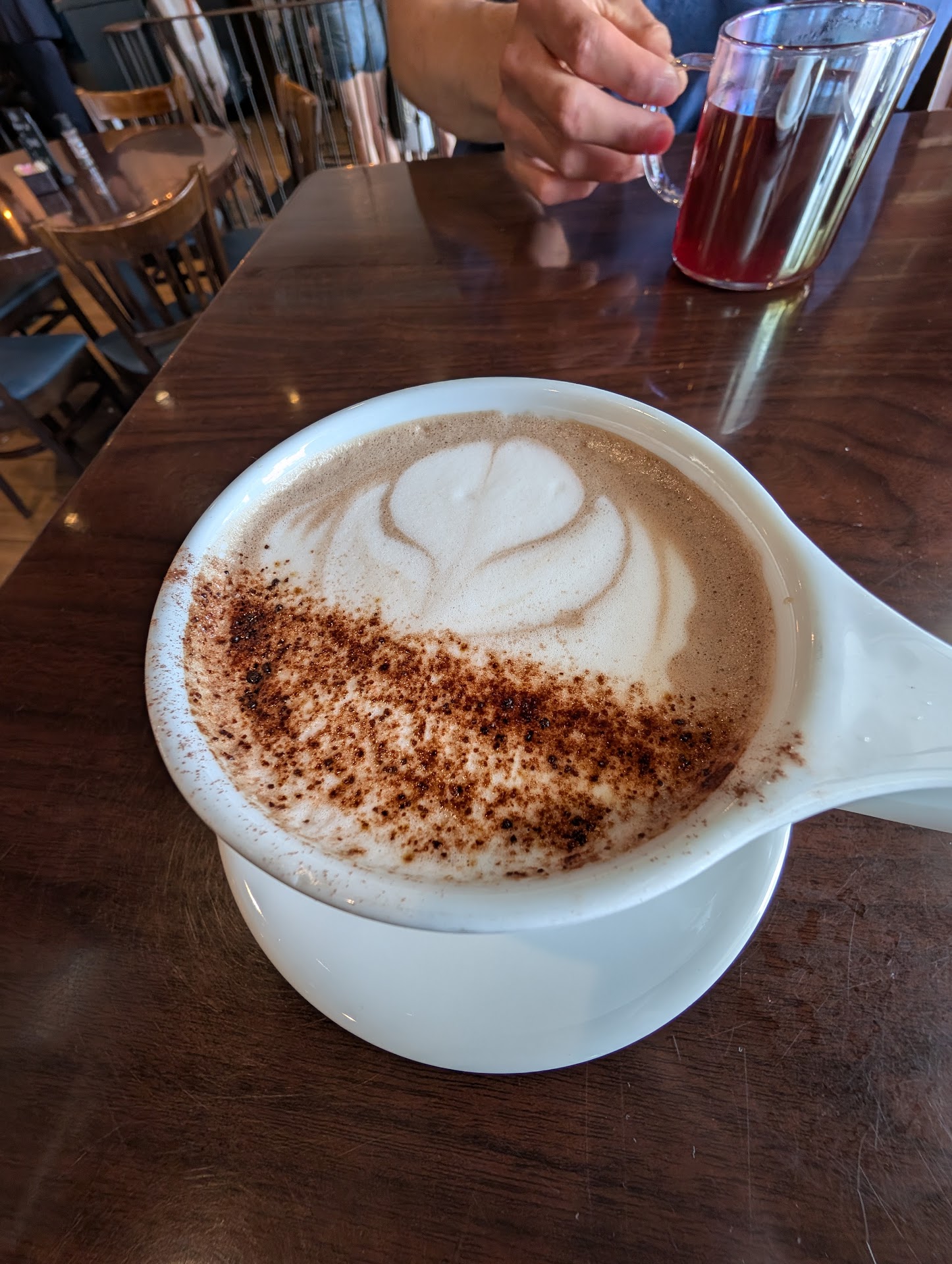 The coffee was fresh and flavorful, and my wife's jasmine/peach tea was incredibly aromatic, and brewed fresh as well.