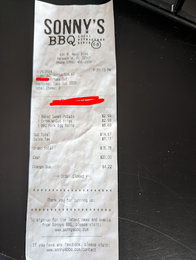 Read moreMy recent experience at Sonny's left much to be desired, and I feel compelled to share my disappointment. Unfortunately, I didn't receive everything I paid for, and the overall quality of the food and service was subpar.