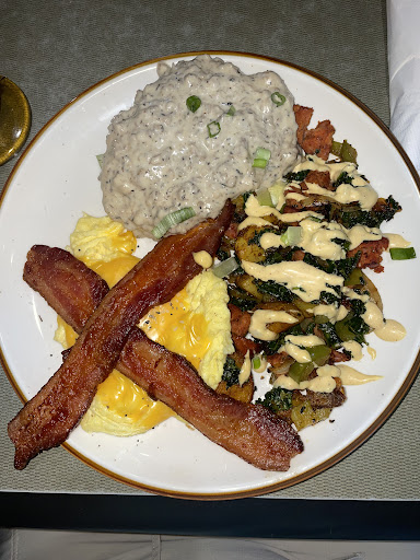 Ā Ā Ā Read moreIt's really hard to give a place 5 stars, but with seeing all the others I had to. The food is impressive, very delicious, and the eggs reminded me of my grandmother's, but with finesse. They don't use cream in their eggs but it came out in a perfect texture with no burns. The potato's with garnish and what seems to be maybe little pieces of pork were out of this world. The bacon was a perfect crisp maybe a little hard on one end but easily looked past on. The biscuit was fluffy with a nice crunch on the bottom, and the gravy was great a little salty but still great! This place is amazing. The staff are very welcoming, warm, and do not shy from a conversation. The power went out in my hotel so a bummer start of the day and then I came here, a complete turn around to my day! Will bring friends...
