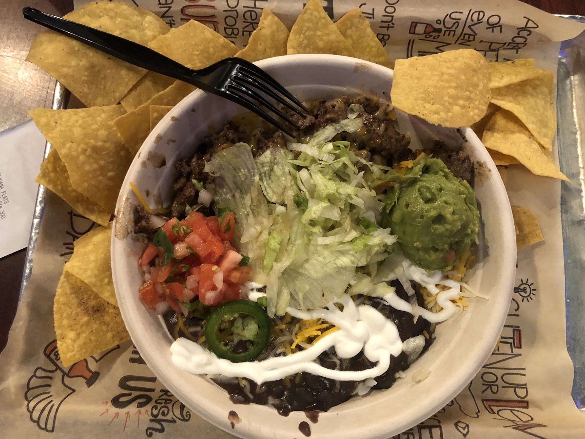 It is a fast version of "not full on Mexican" food, but not "fast-food" either. Think college, frat lifestyle Mexican food & atmosphere and that should give you an idea. You walk up and order your food after which you can be seated and they bring the food out to you. I have not been disappointed.