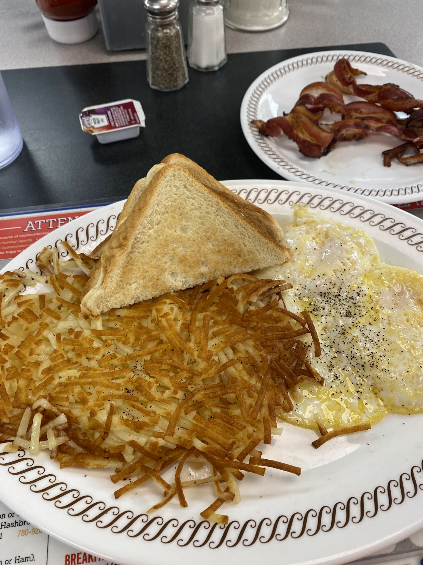Read moreFood was fine, but it's hard to mess up eggs and hash browns. Service was nearly non existent. We took our seats and got greeted, silverware, all that jazz. Drinks came pretty quick, it was just water. But then we waited what seemed like an eternity to get our order taken. Food didn't come very fast either. After we got our food we weren't contacted for at least 30 minutes, and that was only after we flagged someone down to bring our checks. It was somewhat busy, but given the amount of staff they had working that particular night, no server should have had more than two or three tables max. The lack of contact we had with our server was not excusable. After everyone finished eating, we sat like fools for 15 minutes until finally we gave in and flagged a server down so...