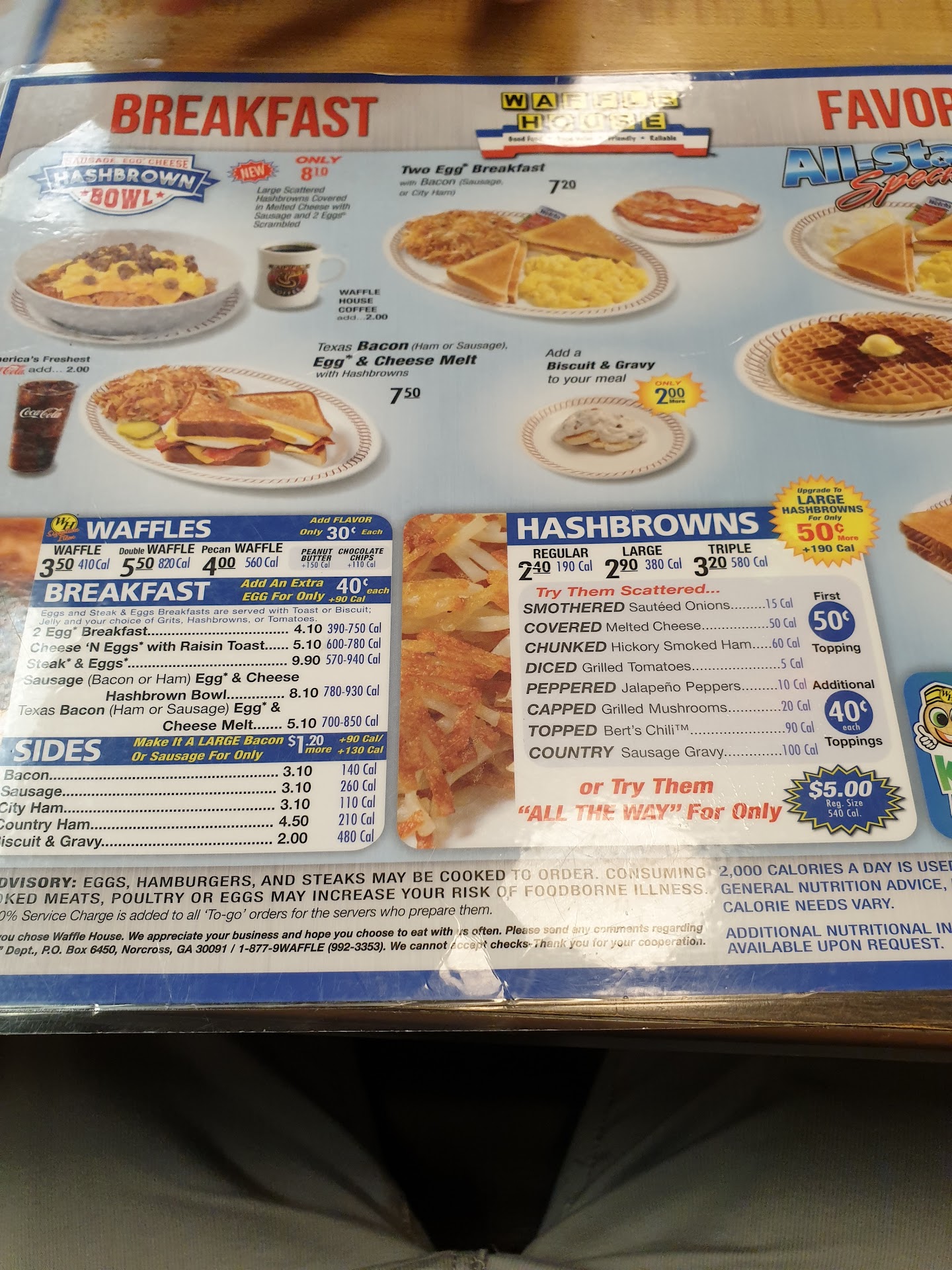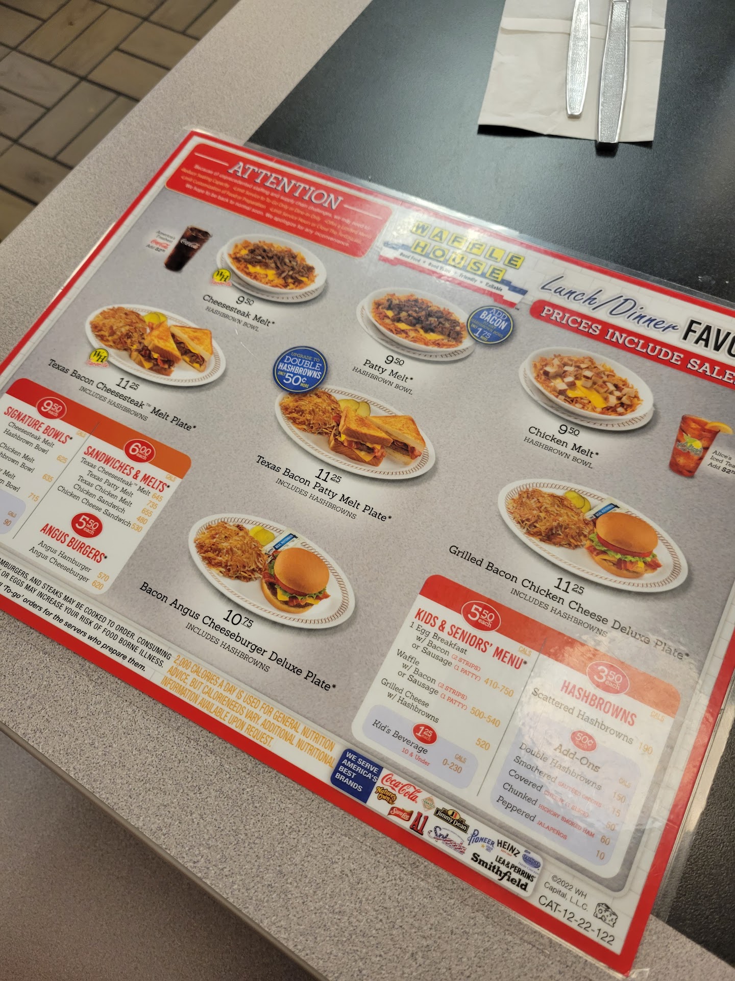 Read moreI come to this Waffle House often, see most of the same people but today the older lady, JILL was so rude. Like it absolutely blew my mind at how someone can be so rude and nasty yet still smiling. I would absolutely recommend not going here if Jill is working. She started my day off with a bad taste in my mouth. She was mad I had to unlock my card before paying and walked away from the register as i was unlocking my card. Then, when I was ready she told me I would have to wait, and proceeded to tell me that my food wouldn’t be made until i could pay. (as if i wasnt going to pay) Which is also wild due to the fact that every other time that I go, they make my to-go order first THEN cash me out… Ultimately, the food was good but the service was absolutely atrocious asides from Sam he had a very positive attitude! Hire...