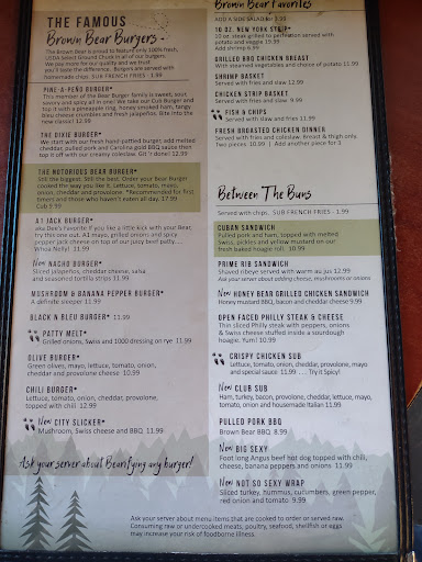 Read moreWe’ve eaten here a few times in the past. We love the Brown Bear in Shelby. The last time we went here was a week ago and they were busy. We walked in and no one greeted us. In fact they would exit the back and see us and turn around. There was no sign to say wait to be seated or seat yourself. Finally my sister flagged down a server and she asked if we had signed in on the board on the wall. There was a tiny whiteboard on the back wall as you walk in which we missed. Everyone who walked in after us also missed it. We told them where to sign in as they were experiencing the same lack of communication. Our server said very little to us. Basically did we know what we wanted? He spoke with no personable skills at our table or those around us. Our food was delivered promptly but when they rattled off what the dishes were we couldn’t understand what they were even saying they spoke so quickly. We did not feel welcome at all! The food was great as normal and that I believe is the reason people still go there. We’ll still go to the one in Shelby but won’t be back here unless it’s for takeout! Very disappointed in how rude the...