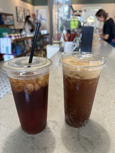 Read moreCheerful little shop, worth a visit! • espresso : a cedary espresso with a tint of sweet cocoa (roasted @darkwatercoffeeroasters // @greatlakescoffee ) • @synessofactory 200 espresso machine • interior : small hometown vibes with playful blue//green accents • relatively little seating, however the location is wonderful for a nice visit and a quick stroll downtown :) • kind service--even during an overwhelming rush--fast + efficient + pleasant • offers an impressive variety of coffee, tea, vintage sodas, baked goods, breakfast tacos, sandwiches and salads