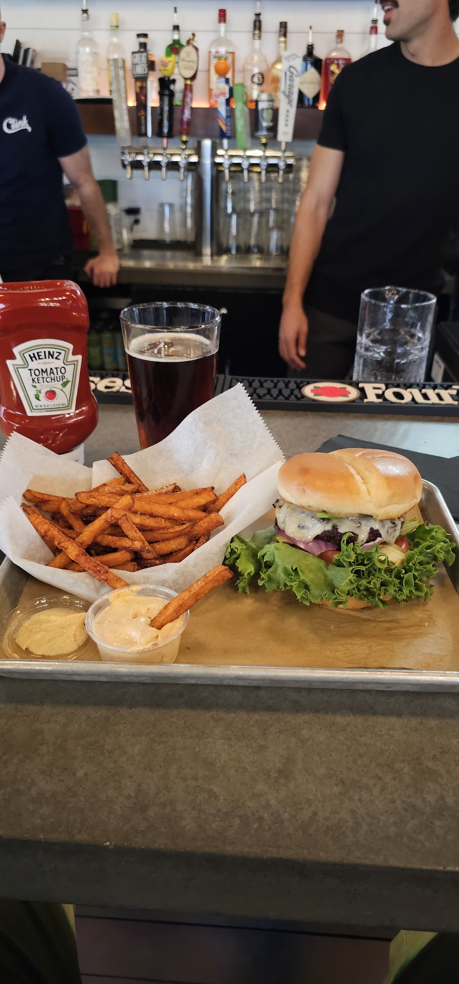 It seemed the ads promised a trendy place for drinks and food, but we were a bit let down. It was sunny and cool; the larger outdoor seating area was unavailable (no staff?) and obviously no patio heaters. The minimalist interior had enough tables and some sofas, but large TVs with football made it into any other sports bar. (Sorry, but we hoped for a nice place to talk, maybe with great music). We anticipated a sophisticated bar (maybe like a nice pub), but there were a few bottles and extremely limited drinks menu. Our side salads were good, but served in paper bowls. The server was very sweet and attentive, but the whole vibe just disappointed. There was a large cart parked at the end of the bar with cleaning supplies. We love new, independent businesses and hoped this might be a winner, but it didn't live up...
