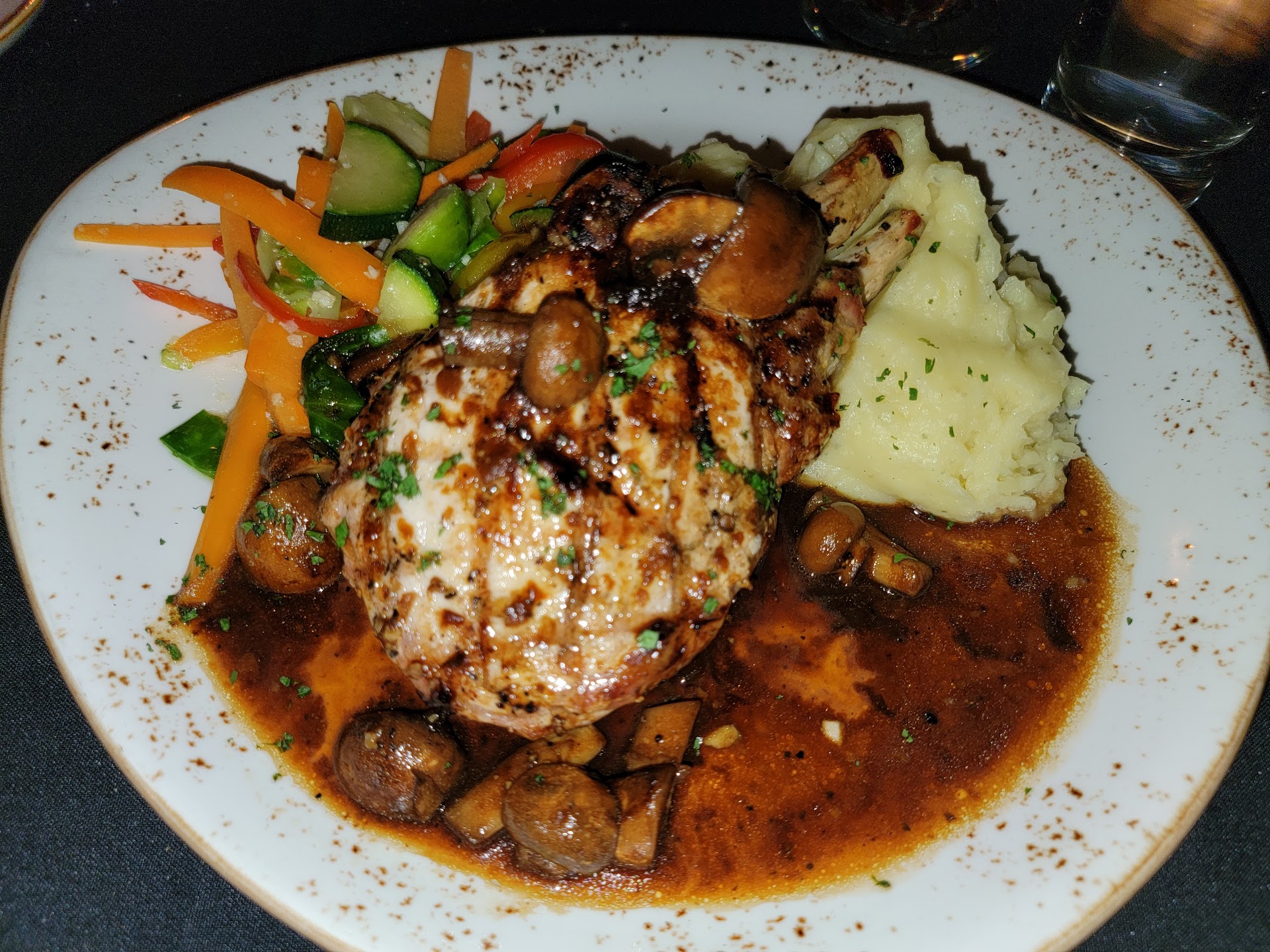 The main dishes, however, were OUTSTANDING. I got chicken picatta, which came with big cloves of roasted garlic. Everything was executed perfectly. My wife got the Kansas City strip special, with potatoes and asparagus. It was cooked perfectly, and the green peppercorn cream sauce it came with was delicious.