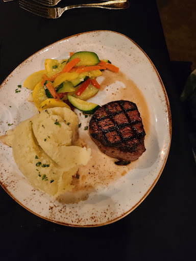 Read moreI have a hard time giving the "fancy/expensive" places more than 4 stars because the thing is, with how much it costs, you better be getting what you pay for and that sets a fairly high bar imo. We each had the drink on special, which was something similar to a sangria but lite and in a very small glass. About $7 too expensive ($13 each). There was nothing bad about the breaded Calamari appetizer we had, though it seemed we received less pieces than in the past. My 12oz medium rare ribeye was cooked perfectly and had a great fat to meat ratio. This is important because hey hand cut the pieces in the kitchen so they control what each piece of meat looks like aka the marbling. The ribeye came with a side of which I choose something called Yukon mash. It was just mashed potatoes with nothing particularly special to note. All in all the food was as expected for the price, which is nice, but it also didn't surprise me. I will say I probably did get the most basic item on the menu, but complex flavors are lost on me and there is nothing that I enjoy more food wise than a good seared piece of beef. Commenting on the atmosphere: it was very nice inside, a bit small but very functional. I was able to hear the people I was with and didn't have to yell compared to say connected. The acoustics in the building were much more social friendly. We could not hear other people talking but could hear each other just fine, which is very rare to find in a public setting. I would recommend this place as a celebration station or occasional upscale to the regular Texas Roadhouse/Olive...