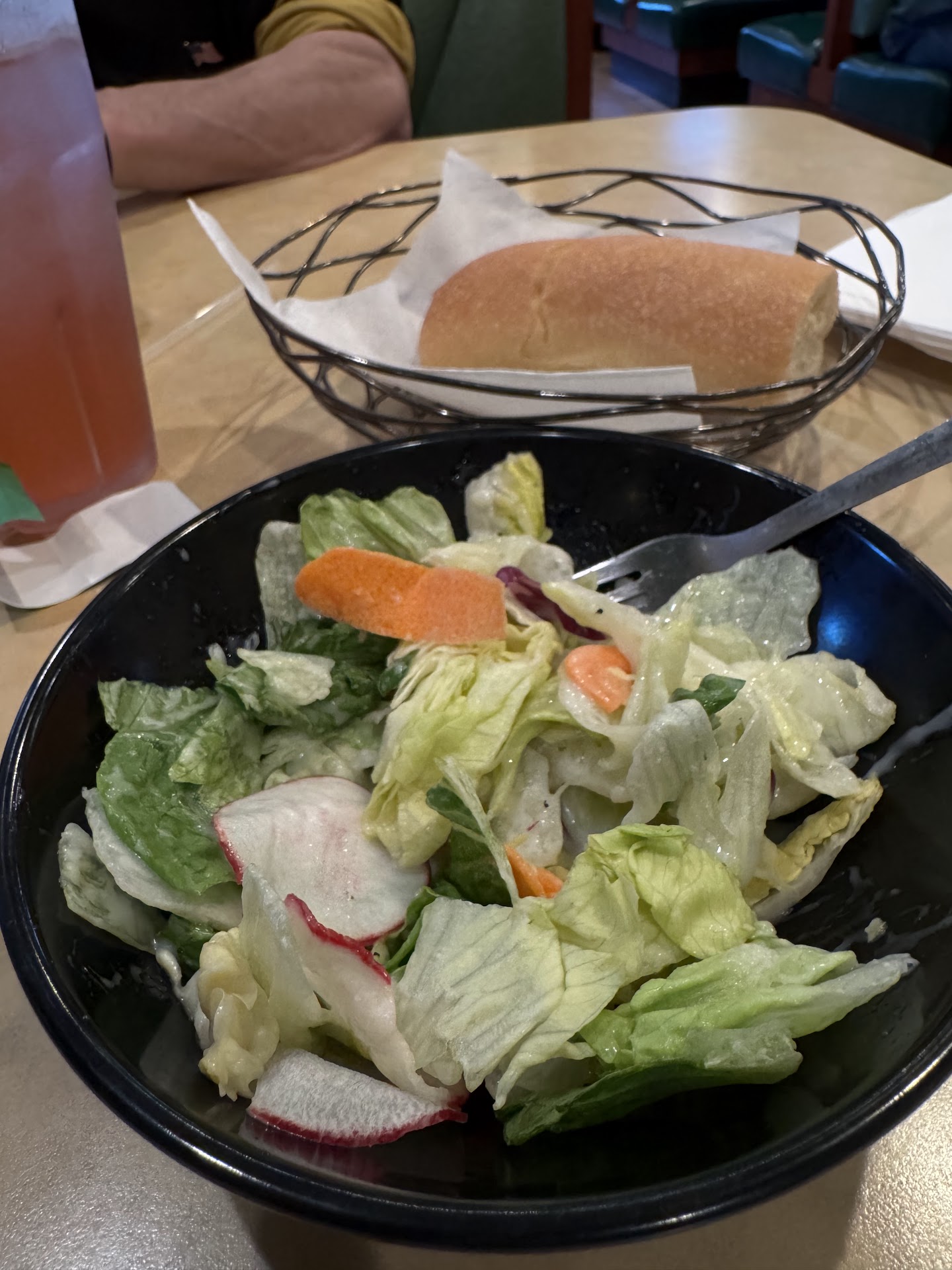 Read moreWe ate there last Sunday. Well, perhaps instead I need to say we tried to eat there last Sunday. Three of us arrived a tad before 1pm (we had a play to go to at 2:30pm) and were seated. The waitress eventually made it to our table and we order promptly telling her about our plans and she said 'no problem'. Terrible service and food finally arrived at 2pm....the same time our pre-dinner salad showed up as well. Of course the orders were wrong and instead of sending it back to be corrected we simply asked for takeout containers and for the bill to be corrected accordingly. 2:10 the bill comes back to the table still not corrected and this time actually had drinks on the bill that we never had, nor did we ever order them. I took the bill up to be paid figuring they'd be able to get it corrected. I explained to the redhead at the cash register the problems with the bill.....and it was at this point that the waitress came up beside me and chewed on me that I should never have expected service that quickly and should not have shown up with future plans. I was aghast that she'd confront me like that and the young ladies at the desk apologized all over the place for her behavior. The bill showed up and I didn't have time to really look it over but there was a big slash through the 'tip for service' line... and I made a point of telling the redhead that. She understood completely. I don't know the waitresses name but if you go there I hope you don't get her for your table. Good enough food but I'd never have her for a waitress ever again if I...