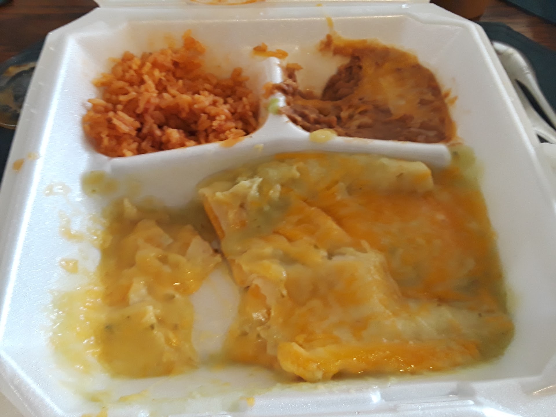 Read moreWORST MEXICAN FOOD I HAVE EVER BOUGHT! I am only giving 2 stars instead of 1 because the chicken enchiladas were ok. My 6 year old & I went into this place for the first time yesterday. My daughter got a chicken taco with fry's & a churro. I got the chicken enchilada meal with rice/beans and chips on the side. 1st of all these taco shells are JUST like the ones you buy from the store. 2nd my daughters taco was soggy by the time we got home (7-10 min drive) and fell completely apart. My daughter refused to eat it and I couldn't blame her. My bean/rice were hard and I was unable to eat them. The chips were the only thing I like but the salsa was not good. They forgot my daughters drink & she didn't even eat the churros which she usually loves. Sadly the french fry's were the only half decent thing. I was very upset after spending $20.00 on a dinner that was inedible. Needless to say we will NOT being...