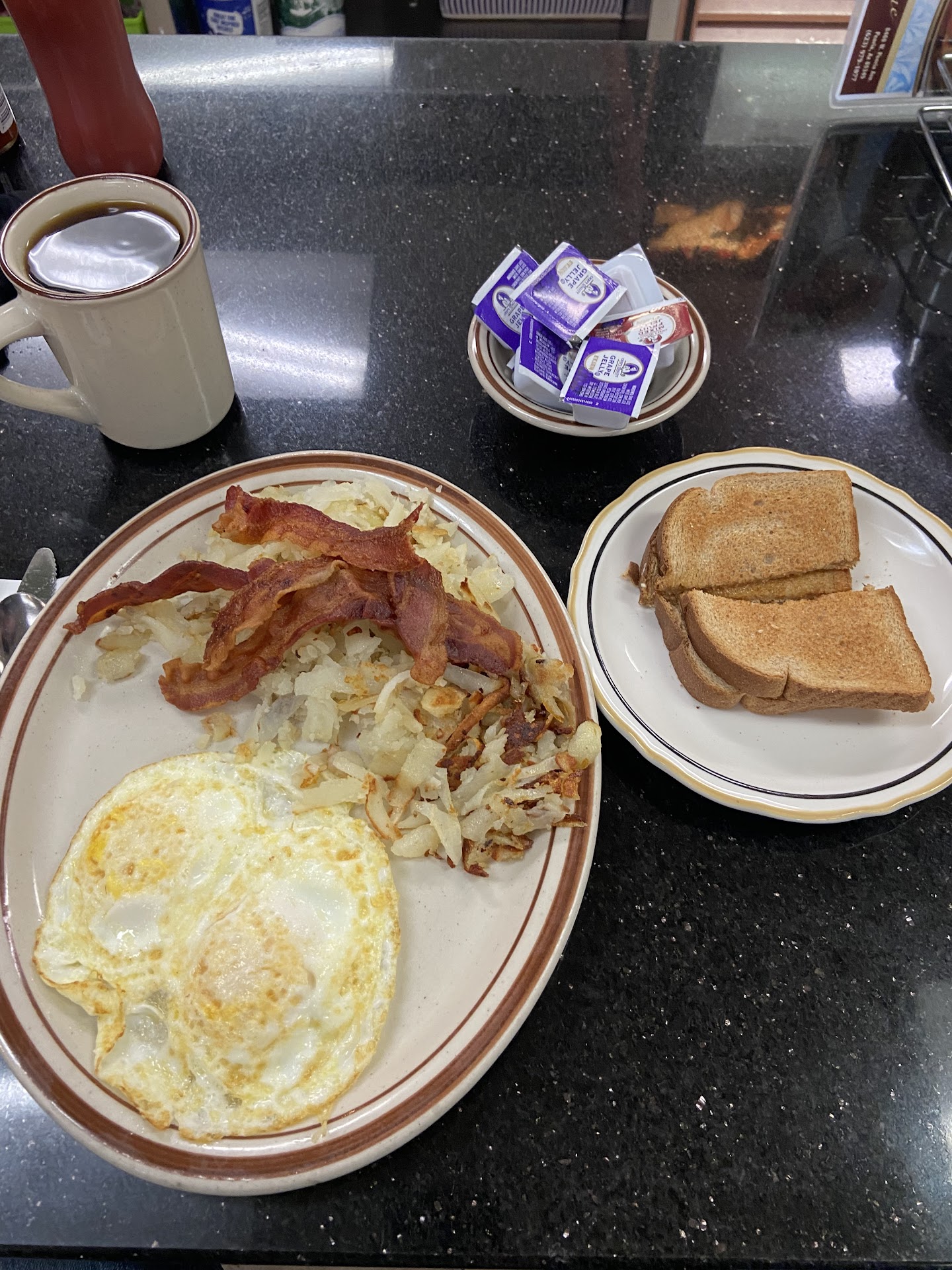 We like a traditional breakfast with coffee, eggs, bacon, potatoes and toast. The food is always good and consistent. The coffee is plentiful and not as bitter as some of the more trendy places. While we may visit other cafe’s to check them out, this will always be our...