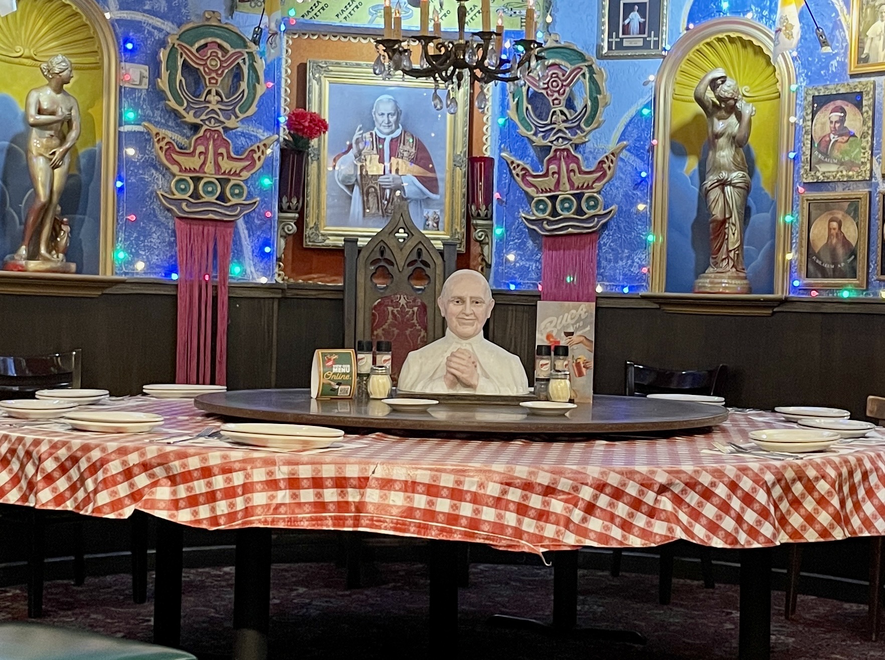 Read moreAfter my long term commitment to Olive Garden had ended due to a mutual decision, I discovered Buca di Beppo. This place is an Italian Fever Dream mixed in with the painting section at a goodwill, but all the paintings are of spaghetti, people eating spaghetti, and/or Nuns. Very inviting atmosphere, like your great grandma’s living room, except your grandmother is Italian. The decor is striking and vibrant like a neon sign, sporting colors red, white, and red and white checkered. This too, feels authentic. As well as Italian. This is the perfect place to bring anyone. A girlfriend, your boss, Jimmy Hendrix, or anyone really. No matter who you bring, they’ll realize exactly what you’re after: Fresh Bread for the table. If I ever need to carbo load, I’ll be coming here. If I want to celebrate a victory in either monopoly or Jumanji, I’ll come here. Or if I want to drown my sorrows in an aesthetically pleasing display of balsamic vinaigrette and extra virgin olive oil, I will be here and likely order 3 of the Birthday sundaes even if my birthday is half a calendar year away. This place is very Italian if it wasn’t clear. Did I mention it was Italian? I feel like I may have forgotten to mention that it was Italian just then. Jarrett was our server, and he wasn’t Italian but we could never hold that against him with his impeccable service. He was great to talk to and gave great recommendations. Will be back for him as well as the bread respectively. I tried to feed some of my Alfredo to this cartoon dog here, however a tempered glass barrier prevented this mission from being carried out and he was left hungry and I had extra Alfredo. Pretty conflicted about it because that Alfredo was delicious and I could see why he wanted it. Maybe it didn’t work because he wasn’t Italian. Our failed carb-caper had left sauce on my screen and after leaving the restaurant the only ads I get now are Italian vogue and every recommendation on my Netflix account is Call Me by your Name. A+ Experience, learned a lot and I will definitely be back for...