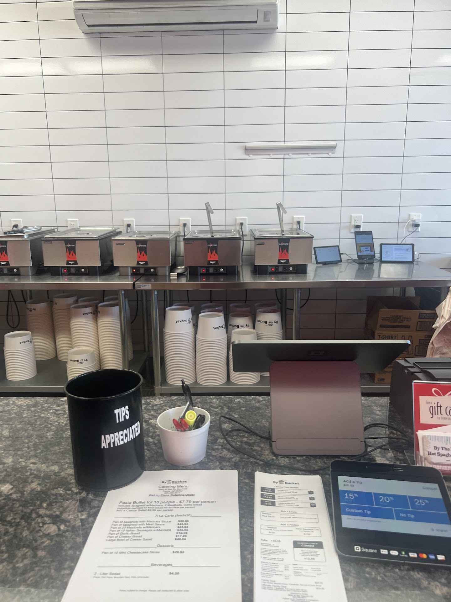 Service and atmosphere are great. But lets get to what is important and that is the food. The meatballs are real good and so is the cheesy bread. So I am assuming you are wondering why I gave such a low review for food? It's the sauce..... Or lack there of. When you open the bucket it looks like you are getting a good amount of sauce, but there is actually very little sauce for a whole bucket. There is not nearly enough sauce to even mildly give flavor to the noodles in the whole bucket. So really your just paying for a bucket of noodles and you can get a box of noodles at any grocery store for $1 to $2.