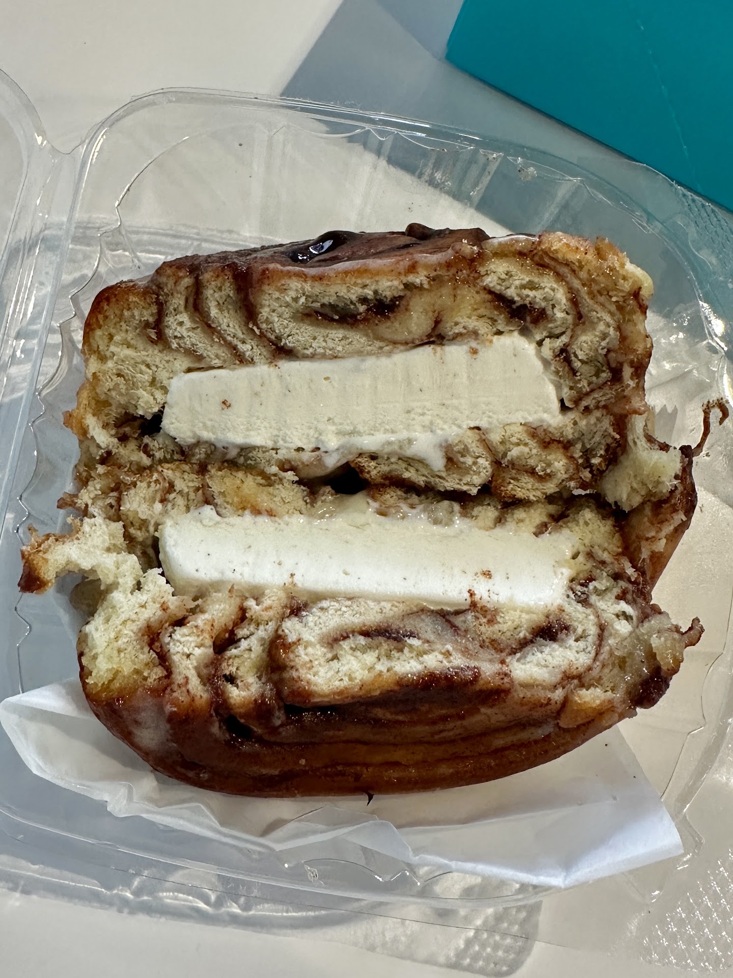 Then I grabbed some ice cream sandwiches to go and eat at home. And some pints! Itās carvels!! Come on!!! . The staff is extremely overwhelmed right now. This place is new. And people are just coming in drove. They cannot keep with the demand of the customers. If you get there at the right time, you might be able to get everything you want right then and there. If you get there at the wrong time, there will be a line and then they will tell you that there is a 10 minute wait For you to get something because they just simply ran out of material to make your order. They are working in the back whipping up everything they need to get those orders up and running again. One lady tried to get a Cinnabon Sundae and she was told that they wonāt be able to serve those again until the evening. I assume they have to make the soft serve ice cream and then it has to chill for a while. I donāt know. Iām not back there making the stuff.