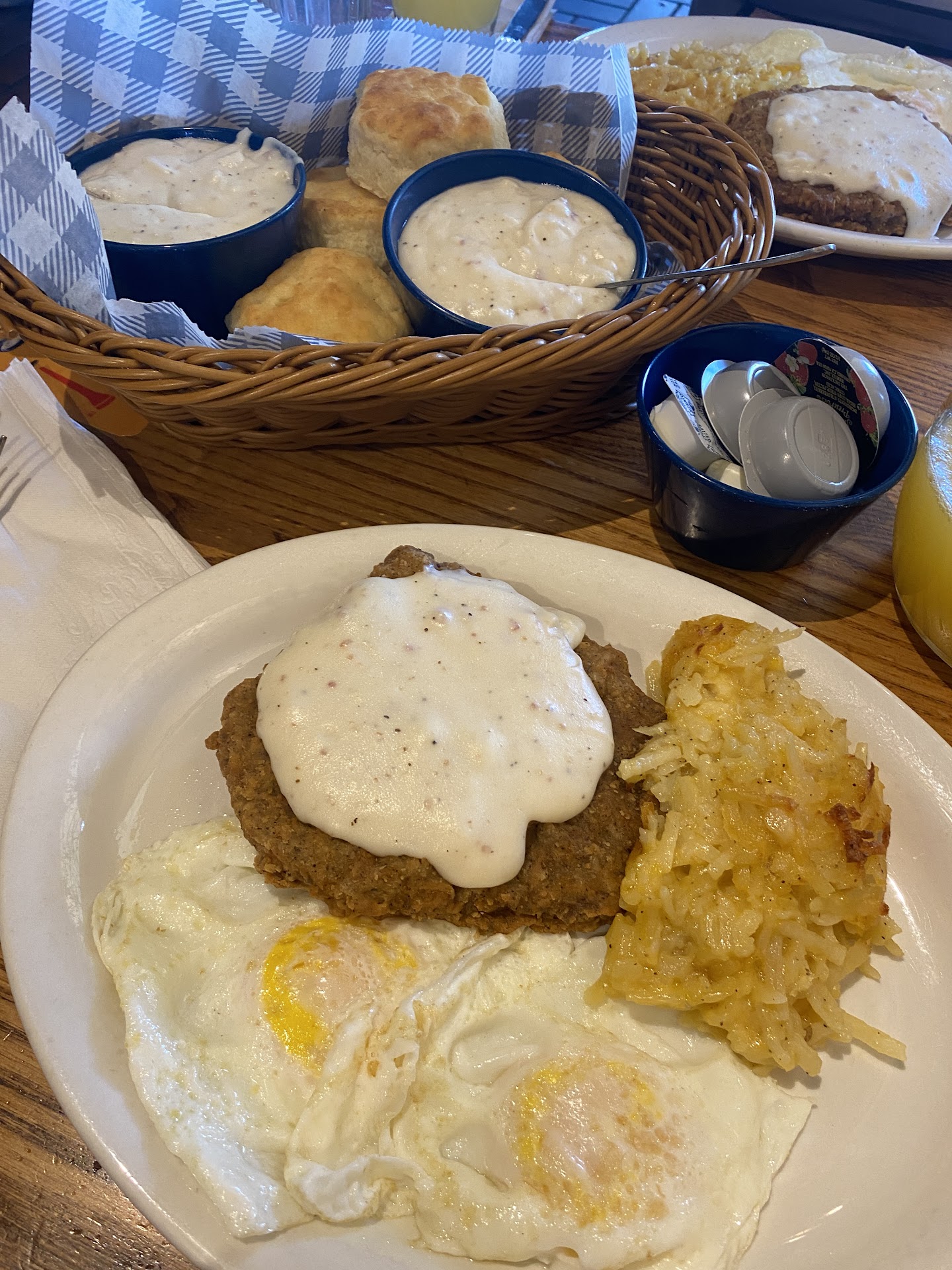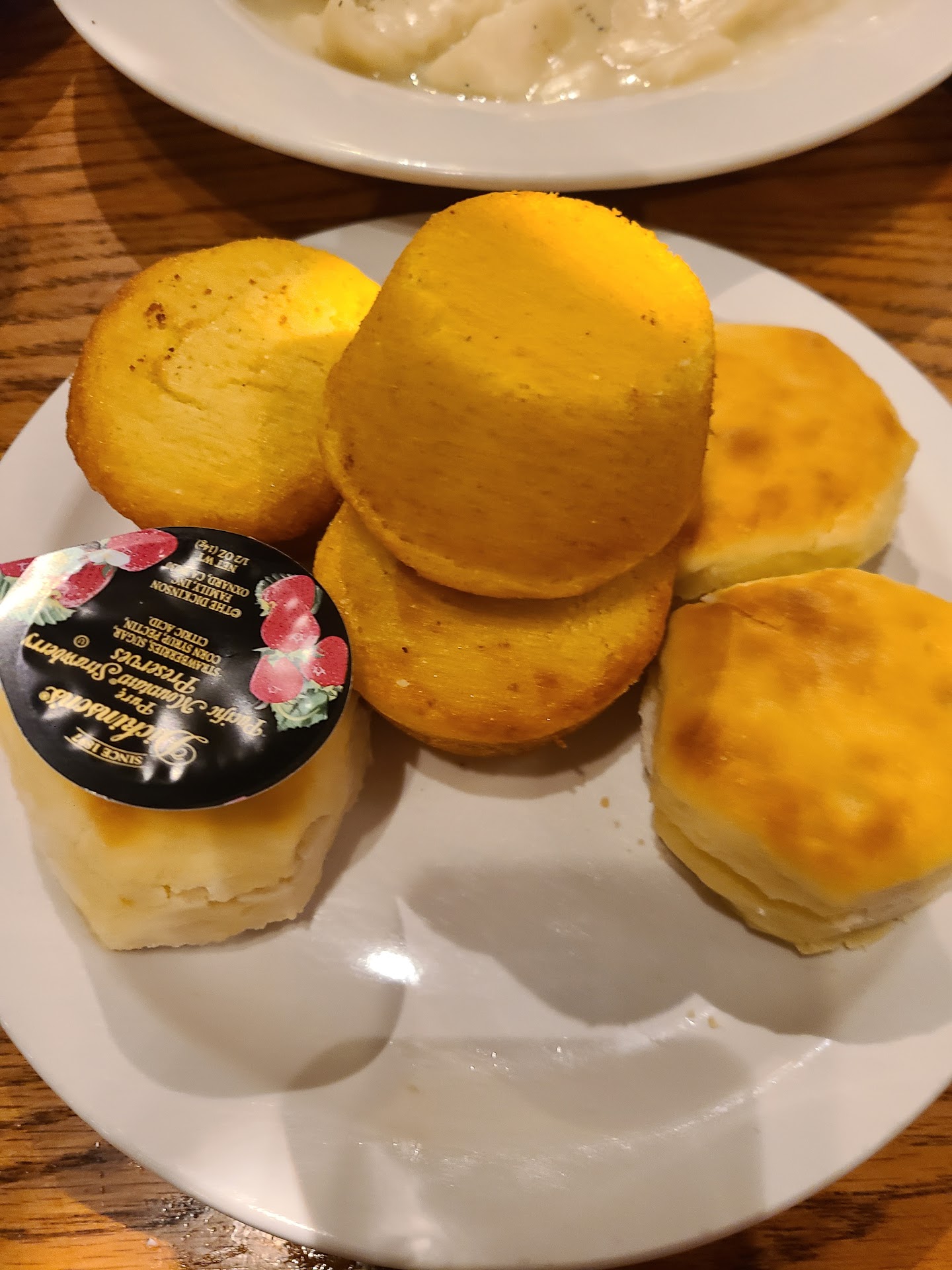 Read moreI ordered the chicken dinner at 5 pm I was served at 5:05. It couldn't possibly be freshly prepared. I started in on the chicken breast, it was dry and tough. I tried to finish it but it was so tough and chewy, I put it aside. The dark meat was somehow separated from the skin. Like the meat shrunk and left the skin unattached and loose. It was dry too and far from hot. I ate the dark meat pieces anyway because, it did have good flavor and I was really hungry. Despite my disappointment over the fried chicken meal I had been looking forward to for a while, I wouldn't normally bother to write a review but toward the end of our meal the manager asked "was everything delicious" I told him no. I told him basically what I just told you. He said, "We don't have a crystal ball to know when we will get a chicken order. This batch should have probably been thrown out." Then he left. That was it! I thought for sure he would offer something to appease me so I didn't walk away with such a bad experience. I looked for him at the check out and he was helping with another customers to go order. No coupon for another visit to give them a chance to do better. Nothing! Why even ask me about the meal? Most people probably just say yes, it is delicious. I should have sent it back but my appetite outweighed my sense of taste. I will never be back to the Cracker Barrel on 84th drive and Bell in Peoria. Shriveled up dry chewy cold chicken is waiting for you though if you're really hungry. Or go through the trash...