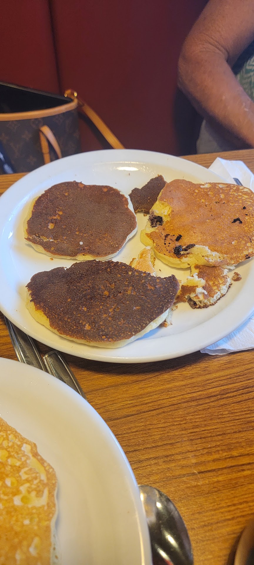 Not happy with this experience!! She waited 10 minutes to put in our order. Had to ask for my milkshake to be brought out the way it was supposed to be made (extra in the metal cup, a spoon, didn't even bother about asking for the cherry I really wanted). Asked if the appetizer had 3 pieces of chicken since we had a party of 3... she said yes!... nope!. Had to ask for our appetizer as an appetizer a few times, she had to ask the cook to make our appetizer and hold our food😒. She didn't remember the ranch/blue cheese. She didn't change the original fries to seasoned. I ordered the create slam (4 things) I asked if I could have oatmeal (knowing it said not past 2pm) she said it was okay, it was just hot water!!... nope! Asked for over medium eggs, came back over hard (cook fixed and brought out (thank you, he was great)) also got pancakes and seasoned fries... she charged ne extra for them??! Told her I wouldn't pay extra for them as I was choosing them as part of the slam. Cook came out apologizing I couldn't have oatmeal. So the whole experience was irritating and uncomfortable and the manager there (who really is nice and all) isn't managing anything! But the way, there was 3 tables, one (new) cook, one manager, and the two waitresses (one just coming on shift) (ours was apparently on her third day) . We live down the street... it's not our first time! Actually we eat there pretty often. She didn't even return to our table. Manager said not to worry, he'd take my meal off....he took off my meal plus an extra $0.46😒😒😒REALLY?? Uh, no doubt that should deff been taken off seeing as how my meal was a total mess... I'm not one looking for free meals!!! But had he given me my "meal" free and at least some extra 10% discount or something, I'd have walked out feeling like he actually cared about all the issues that he knows happened!!! Nope! Thanks Denny's!! So glad you guys raised your prices!! Makes me want to enjoy the same cost elsewhere where the food tastes a lot better and the service matters to people who care about my experience!!! Ending on a good note, the two burgers the kids got were...