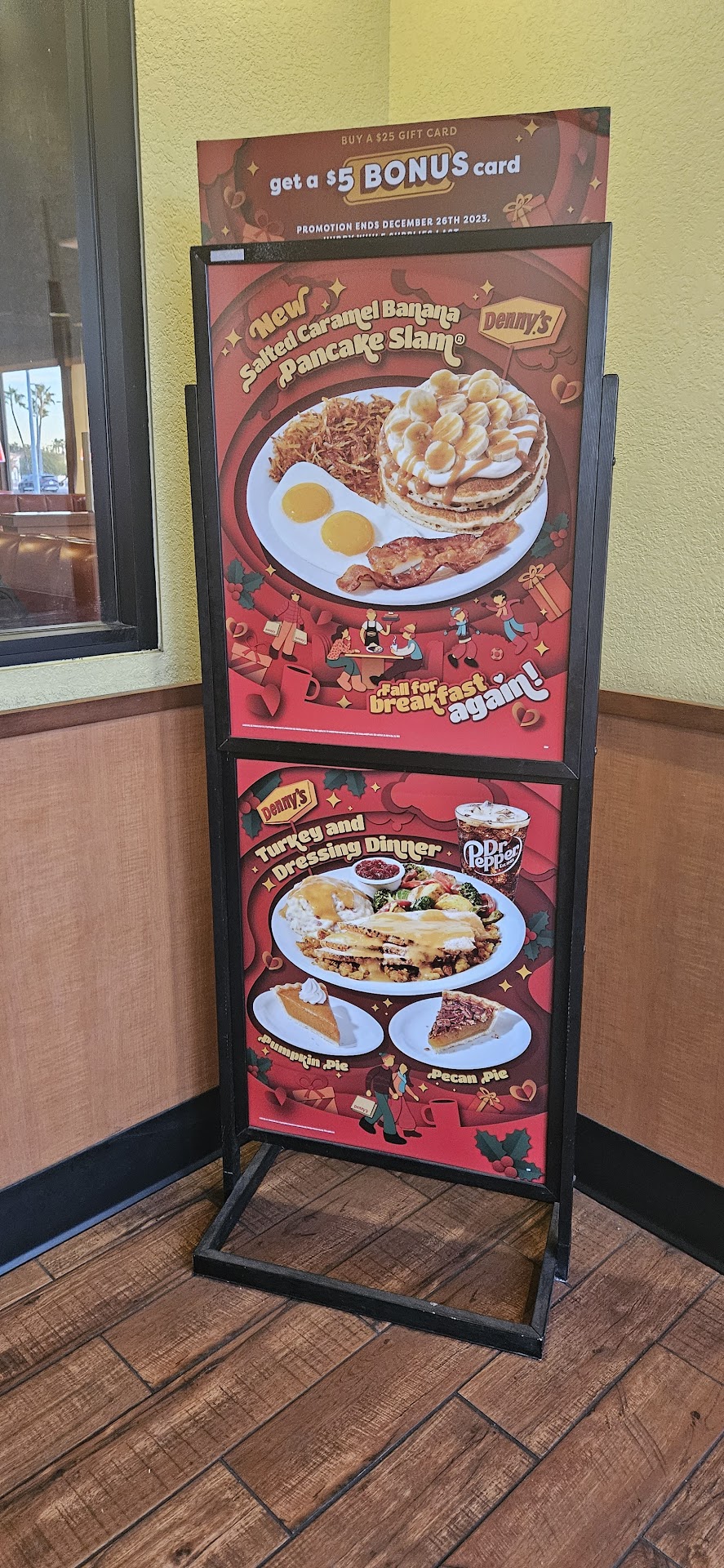 Read moreIt's pretty sad when they have a sign posted at every table asking you to leave a 5 Star review for the waitstaff, yet the waitstaff can't take the time to tell you their name nor tell you it costs $1.29 more for one additional raw onion ring (not slice). Imagine my surprise when I got my check and saw an extra $1.29 for an additional hallow ring of onion, especially when I had said "no lettuce." I will NEVER go back here again. The service has been lackluster for the last few years, and the food, barely adequate. The customer service STILL sucks. Whenever there is going to be an additional charge, the customer should be told!! They certainly didn't deduct the price of lettuce from my bill. I pray to God this is one of the Denny's that closes. We finally got the one in Sun City closed. It's time for this one to close. If you want great food, drive to Brother's on 83rd Ave just south of Grand, or JiMichaels on 103rd Ave just north of Grand. Brother's has a burger special every Mon thru Saturday 11am to 3pm for $11.79. Sound too expensive?? What you get is a delicious 1/3 pound hamburger with lettuce, tomatoes, pickles, (no additional charge for a full slice of onion), Plus big a side of fries AND your beverage. Great service. Consistently, A-rated by the health department. You won't be disappointed. Still want a Denny's fix? Head to Bell Rd, just east of 83rd Ave. Never an asinine MOD. Always clean, GREAT food...