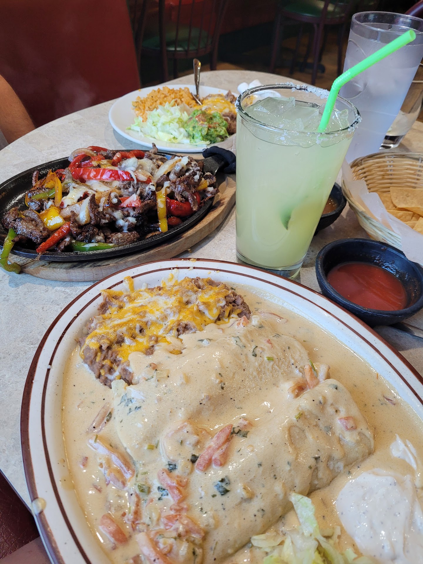To start, they have authentic horchata which is always a plus to an latino/hispanic/Mexican restaurant. Our server was Connie. She knew the menu well and gave several recommendations! I was happy they had salsa verde as well as regular salsa. We also decided to try the Jamaican juice. It was not overly sweet like most juices and a refreshing change from sodas. The Jamaica juice was also helpful with his sensitivity to spiciness. The chip basket was not full, the chips were not warm, and the the salsa is a little runny, had no whole vegetables, but tasted very good.