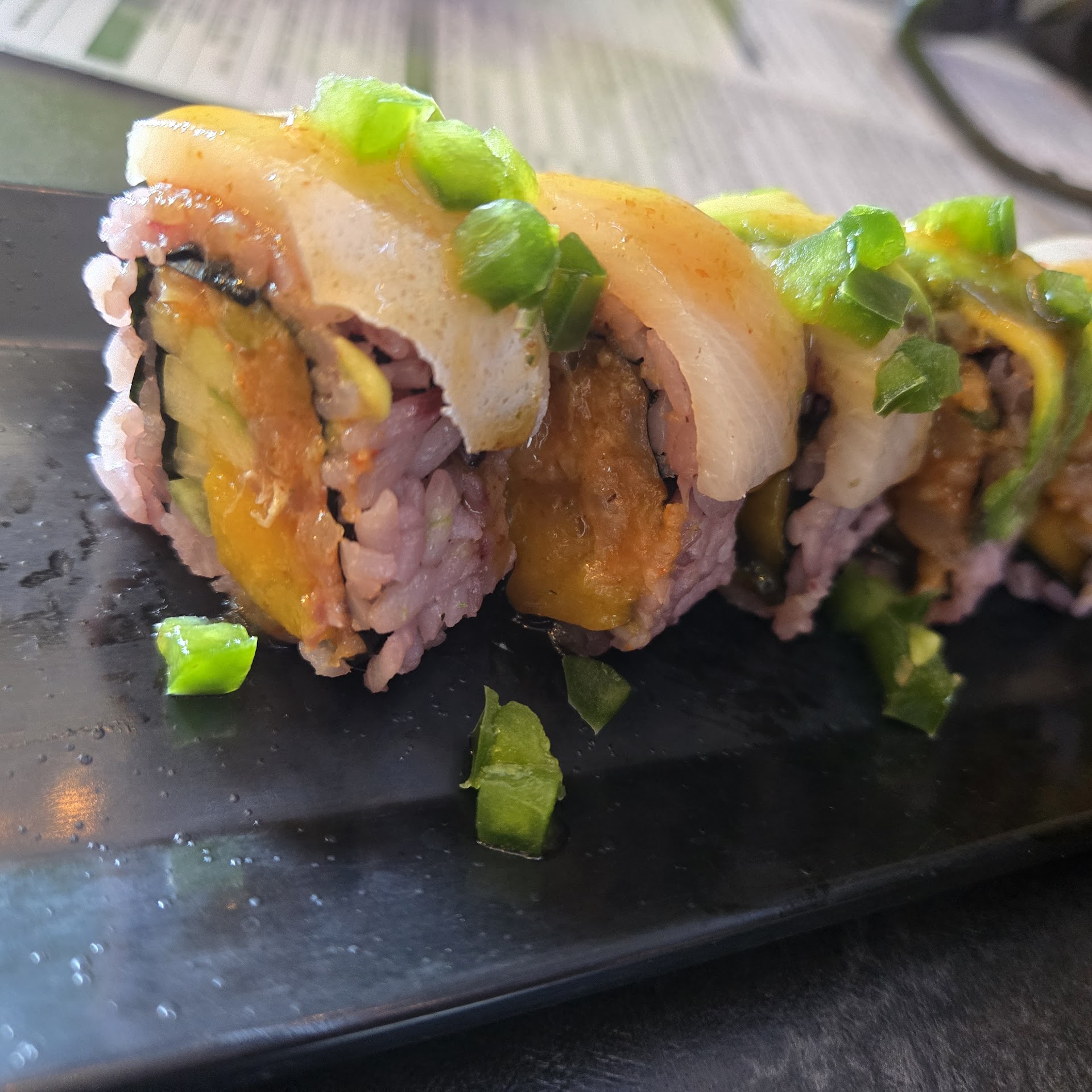 Read moreFirst, the servers were great. But there were tons of issues. We order Gyoza and 3 rolls. The gyoza showed up almost as soon as our waiter walked away. They were really good. Then we got our first roll a tad bit later. The roll was fried and it was super greasy, which I've never experienced with a fired sushi roll before. It would have been really good otherwise. We then sat there an waited. And waited. Then we got the bill. Told the poor kid we were still waiting on 2 rolls. So he went and checked on it. We finally got our second roll. It was good. Nothing really to write home about but also not bad. Then we waited and waited and waited. We never got our 3rd roll. We asked for it to be removed from our bill that we got a while ago and left. I don't know what the back of the house was doing but it was setting the waiters up for failure and I felt bad. They just had issue after issue they had to try to make excuses for that had nothing to do with them, and they handled it well. The issues weren't just with our table. They had to take a roll off the bill for the table next to use and I'm pretty sure there was an issue with the table...