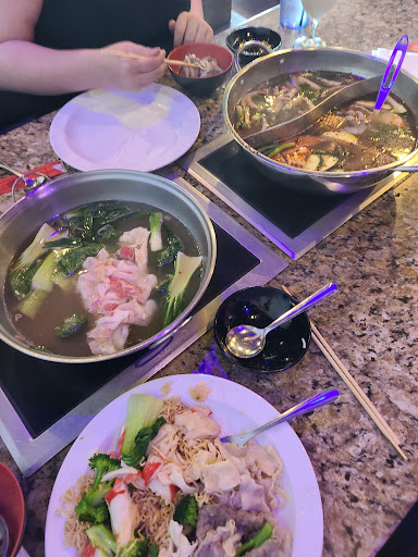 We went here on a Sunday evening (01/19/2025) attempting to enjoy hotpot and hoping to be proven wrong about the 'so-so' reviews this place has received. That was a failed mission, unfortunately. When we arrived, there were already 2 other couples waiting to be seated. There was no one at the door to greet us and nor did anyone come to the door to acknowledge us. While sitting at the front door waiting, we noticed one guy in the back corner making drinks. I saw him look in our direction but never came to the front. Then we noticed one lady taking orders and bringing a cart of food around. Then we noticed one guy coming from the back kitchen with a plate of meat for a table, then went to bus a table, then returned to the back kitchen. So basically, it appeared that only 3 people were working in this entire restaurant, and they had anywhere from 8-10 tables of people going (average of 3 or more people seated per table). One couple left after sitting for about 7+ minutes after arriving and not being acknowledged. More people came to join the remaining couple that was still there waiting, so they ended up with at least 6 people in their group. The lady finally came to the front to speak with that group and then went back to waiting tables (in fairness, 2 of the 6 people in that group did get there right before us). After another 5+ minutes or so, the lady raised her hand, pointing at myself and my husband to come and sit at a table that was just cleaned. At this point, we had been waiting for at least 15-20 minutes, and this is the only interaction we've had with anyone there. After sitting, we waited another 10 minutes or so before the lady came back to take our order. We ordered the vegetarian broth and some beef options but then ended up canceling the order after a few minutes because we noticed a couple across from us who looked really annoyed. They appeared to have been sitting for a while after visiting the buffet to pick out their veggies/add-ins. At this point, we were so over it, and not to mention there was a smell that was quite unpleasant. Initially, when we entered the restaurant, I smelled it, but just figured maybe it was some seafood or something that someone was eating. After sitting at the table for a few minutes, the smell became stronger and more unpleasant. I didn't want to eat there anymore and was wondering at this point if it was even safe, considering the smell. Needless to say, we found out why the place is called 'Hotpot for days' - that's the amount of time it takes to even get served here. Maybe if they get new management and/or hire more help, I may...