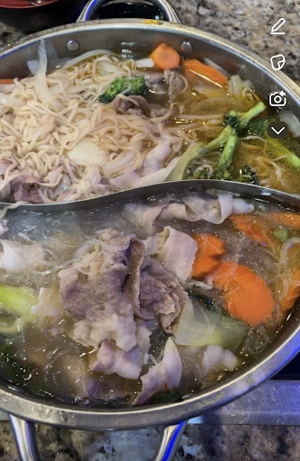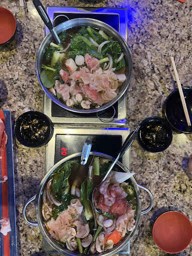 We went here on a Sunday evening (01/19/2025) attempting to enjoy hotpot and hoping to be proven wrong about the 'so-so' reviews this place has received. That was a failed mission, unfortunately. When we arrived, there were already 2 other couples waiting to be seated. There was no one at the door to greet us and nor did anyone come to the door to acknowledge us. While sitting at the front door waiting, we noticed one guy in the back corner making drinks. I saw him look in our direction but never came to the front. Then we noticed one lady taking orders and bringing a cart of food around. Then we noticed one guy coming from the back kitchen with a plate of meat for a table, then went to bus a table, then returned to the back kitchen. So basically, it appeared that only 3 people were working in this entire restaurant, and they had anywhere from 8-10 tables of people going (average of 3 or more people seated per table). One couple left after sitting for about 7+ minutes after arriving and not being acknowledged. More people came to join the remaining couple that was still there waiting, so they ended up with at least 6 people in their group. The lady finally came to the front to speak with that group and then went back to waiting tables (in fairness, 2 of the 6 people in that group did get there right before us). After another 5+ minutes or so, the lady raised her hand, pointing at myself and my husband to come and sit at a table that was just cleaned. At this point, we had been waiting for at least 15-20 minutes, and this is the only interaction we've had with anyone there. After sitting, we waited another 10 minutes or so before the lady came back to take our order. We ordered the vegetarian broth and some beef options but then ended up canceling the order after a few minutes because we noticed a couple across from us who looked really annoyed. They appeared to have been sitting for a while after visiting the buffet to pick out their veggies/add-ins. At this point, we were so over it, and not to mention there was a smell that was quite unpleasant. Initially, when we entered the restaurant, I smelled it, but just figured maybe it was some seafood or something that someone was eating. After sitting at the table for a few minutes, the smell became stronger and more unpleasant. I didn't want to eat there anymore and was wondering at this point if it was even safe, considering the smell. Needless to say, we found out why the place is called 'Hotpot for days' - that's the amount of time it takes to even get served here. Maybe if they get new management and/or hire more help, I may...