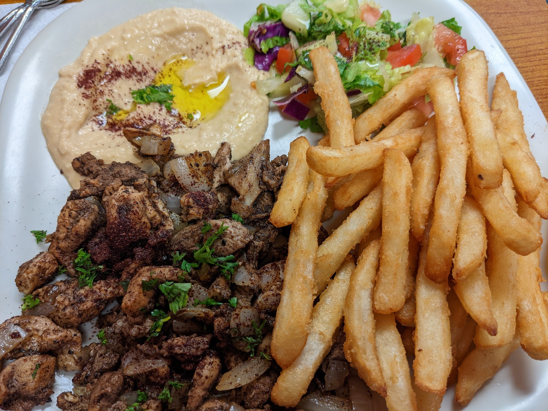 The fries were just mass produced commercial frozen fries. The pita bread was very dry and cracked as soon as it bent. Hummus was very bland. The actual Shawarma was dry and the quantity was very small. The beef shawarma was much drier and I definitely would not recommend that dish. The salad was super tiny and basically tasted like oil.