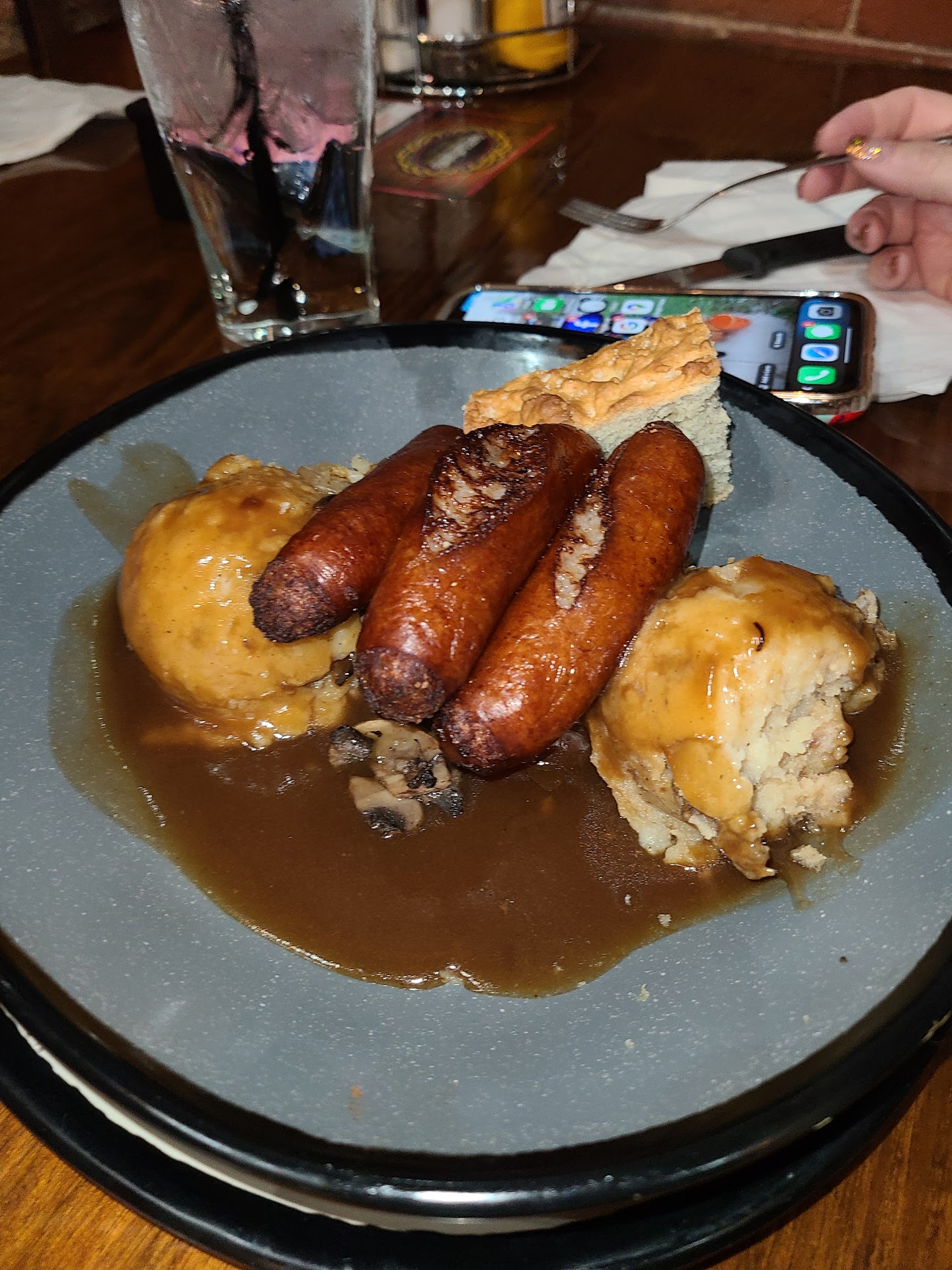 Update, took my date for a night out here and we were seated by a very nice if somewhat confused matre d. Tried to seat two seniors at a high table when there were plenty of open regular tables. She gave us no trouble when we said no, just thought it was odd like she had just been chewed out for seating people in the wrong places. As time passed and more customers came in it was apparent she was trying to cram as many in a space as possible because she offered this high table right next to the door to everyone that came in and they all asked for a regular table. After watching for a while it became apparent that the waitress was calling the shots, what was convenient for her not the customers. The waitress herself showed us a professional courtesy if not somewhat cold. We were waited on quickly, our drinks hit the table and our orders were in. I drank most of my Sam Adams Octoberfest when my shepherds pie and my dates potato soup arrived. She dropped off the food and left us. I would have liked to have had a couple more but didn't get the chance. Both our dishes were hot...