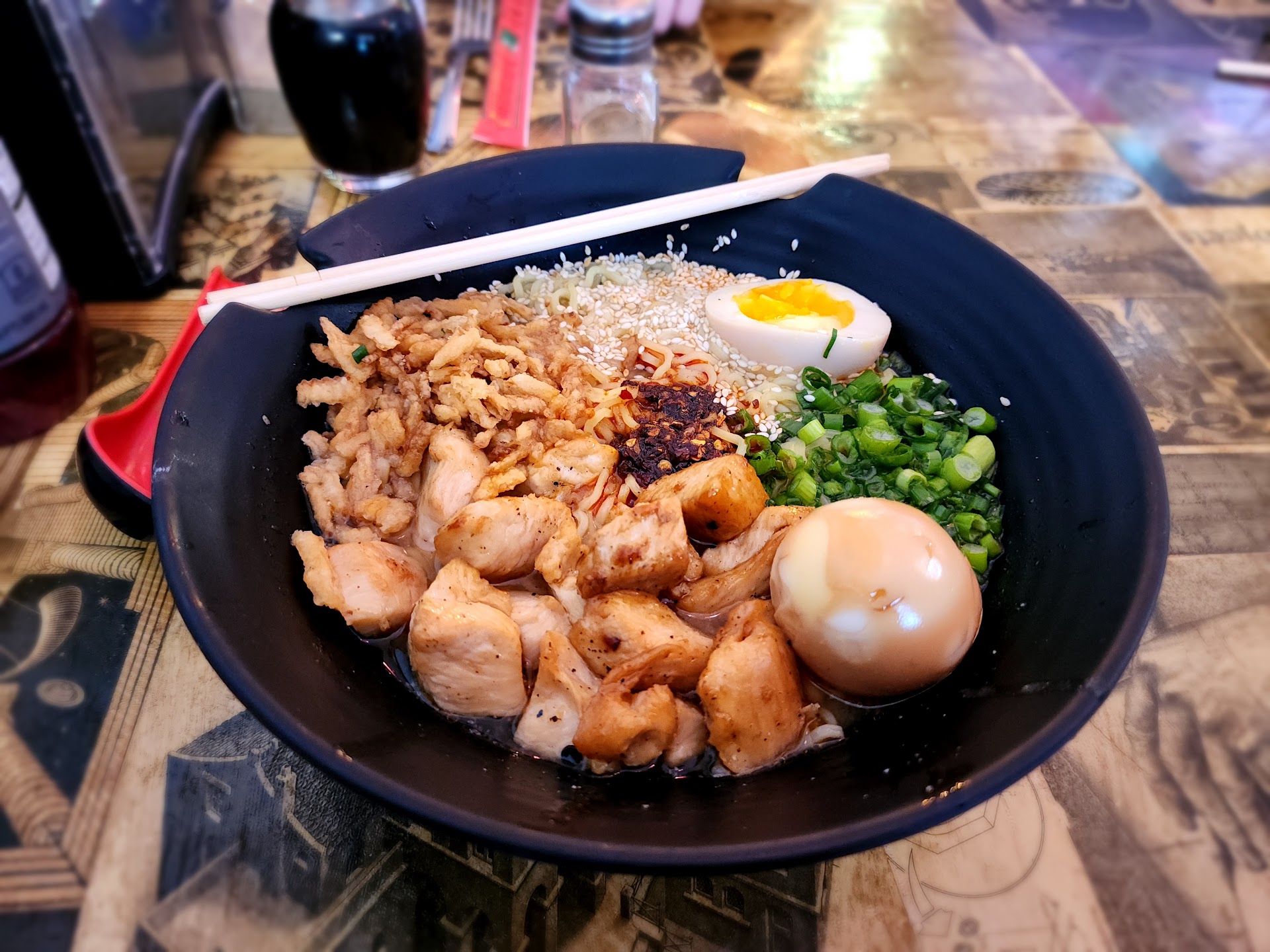 I was so excited to try this place but was alittle disappointed with my ramen! Everyone was so nice and all of the food was great! We started off with potstickers and Philadelphia making rolls they were amazing! My husband got the spicy salmon roll too spicy for me! Next we got our ramen bowls. My husband loved his bowl and had his on hot spice level. I got the miso pork bone broth in mild and the broth was really bland and had really no umami flavor which was disappointing but also had pork belly in mine and it was basically 2 slices of pork with alittle bit of okay tasting fat on it, I was expecting flavorful unami pork but it was not. I got wavy noodles which were tasty good, corn, bean sprout, and scallion with a sliced egg. The egg was cooked and marinated in a soysauce flavor it was the best part of my ramen dish! I had heard and seen the marinated cooked egg before but never had tried it! My husband was very happy with his meal. I also noticed that the bathrooms did not have a changing station so trying to change a babies diaper was non existent. With the create your own ramen instead of premade ramen options that was also alittle disappointing! (They also have no relation to the ramen place that use to be across the street around during...