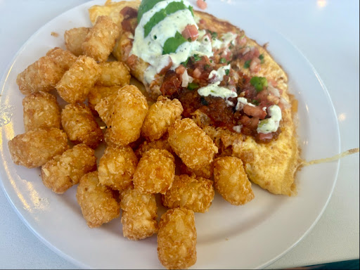 The food was ok. My husband ordered the southwest omelette, Tator tots, and the house bread. He said the omelette was good, but didn’t really have spice as he would have predicted/hoped for. He loved the house bread, which is a multi grain. I ordered the classic two egg breakfast- I got scrambled eggs, bacon, English muffin, potatoes o’brien. The eggs were great, one piece of bacon was undercooked (very flimsy), the potatoes didn’t have much O’Brien, in all those potatoes I found maybe three tiny pieces of bell pepper, and the potatoes were on the dry/over-cooked/over-warmed side. The English muffin was fine, but very soft, not like a standard English muffin that is a little crispy on the outside when toasted.