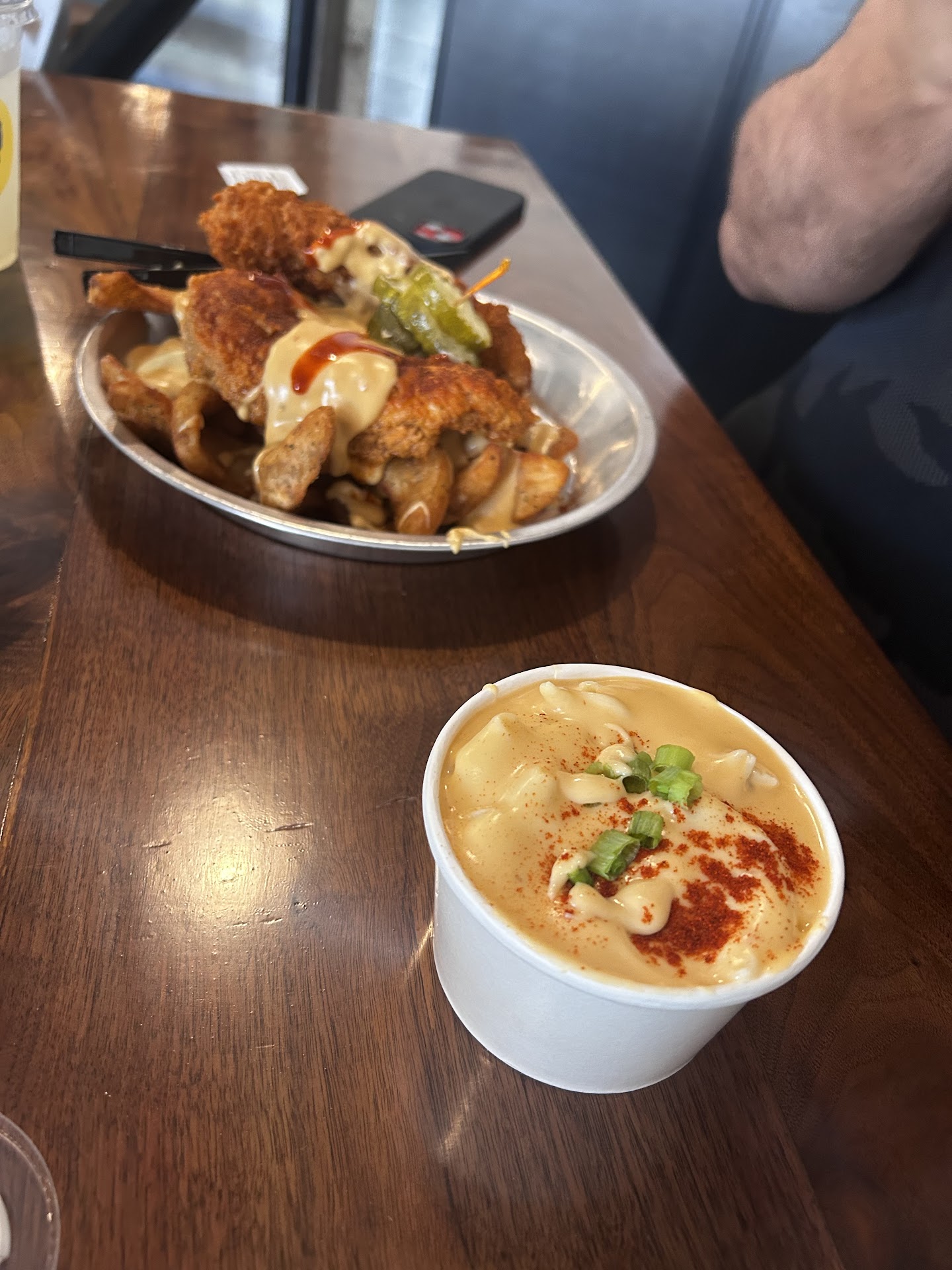 Read moreI got the chicken tenders and cheese curds. I also tried some of the chicken and waffles. The chicken and waffles were really good. The waffle was probably the best i had ever had. Super soft with a strong vanilla taste. It's just perfect. The chicken tenders were not very good. The overwhelming breading on the outside of the chicken was very hard. Somewhat like a crustacean, having a hard armored encasement and all. The lemonade was good, sweet tea was good, and the cake shake or whatever was also good. Everything is crazy expensive, especially for what it was. 57 dollars for 2 people to have subpar meals. That 57 dollars includes the tip. Which I would not have tipped if I had known they were going to be waiting on us. They asked to choose a tipping option, so I tipped them. Then they handed me cups right after I tipped them. Which is not a very morally correct way to run a business. Very long wait, and disorganized. They dont sit you at your table, they assign you a number, and you go find a table yourself. We got number 9, and then halfway our 30-minute wait for the food, we got brought the food for table 9, which was not our food. The people who placed mobile orders had to wait just as long. As the people who had just come in. Its like they didn't start cooking the mobile orders until they were there to pick up their food. Overall,...
