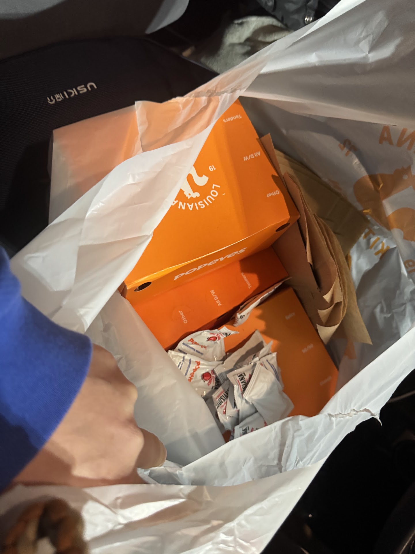 Handed me my food at the window after a half hour or longer wait. Everything had been rung up correctly. Employee confirmed verbally what the drinks were when she handed them to me, but my coke ended up being a diet coke. Told me while handing me the food that the strips weren't spicy because they were out of spicy (but they had been rung up spicy and confirmed verbally at the speaker). The sauce for the strips that she rung up on the speaker weren't given to me. Didn't even give me my strawberry biscuits. My dark meat 3-piece was 2 dark/1 light. No point in driving back just to wait another 30-45+ minutes (as has happened any time food has been incorrect in the past).