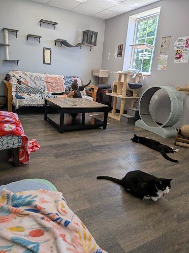 Read moreNeeded some coffee and just happened to be near River Kitty cafe so decided to stop in for the first time. Upon walking in, I noticed that it was a bit small, not many tables for sitting if you didn't want to be in the room with the cats. If I remember correctly, there was only two tables, and then there were bar stools where you could sit and watch the cats through the glass. I noticed there was about nine people or so in the room where the cats were and they were just sitting around and enjoying the company. The cats were very comfortable and some were taking a nap, but you can tell that they enjoy the visits. I feel that it was a little bit odd of a layout for example it was a coffee shop and it seemed like the area for the coffee was very small. I also think that adding some warm tones of paint like maybe tan walls and one burgundy accent wall, that would really make the space more inviting and comfortable. The room was divided with a closed door where the cats stayed, but quite understandably there would have to be a door that way the cats wouldn't run out when the door opened. It was $6 for a half an hour and $12 for 1 hour to sit with the cats. The young man at the counter was very polite and took my order for my latte. The coffee was good but the syrup pretty much stayed settled at the bottom of the cup. However, it got the job done, and I got the energy that I needed to get through the afternoon. If I'm in the area I'll probably stop back by and grab...
