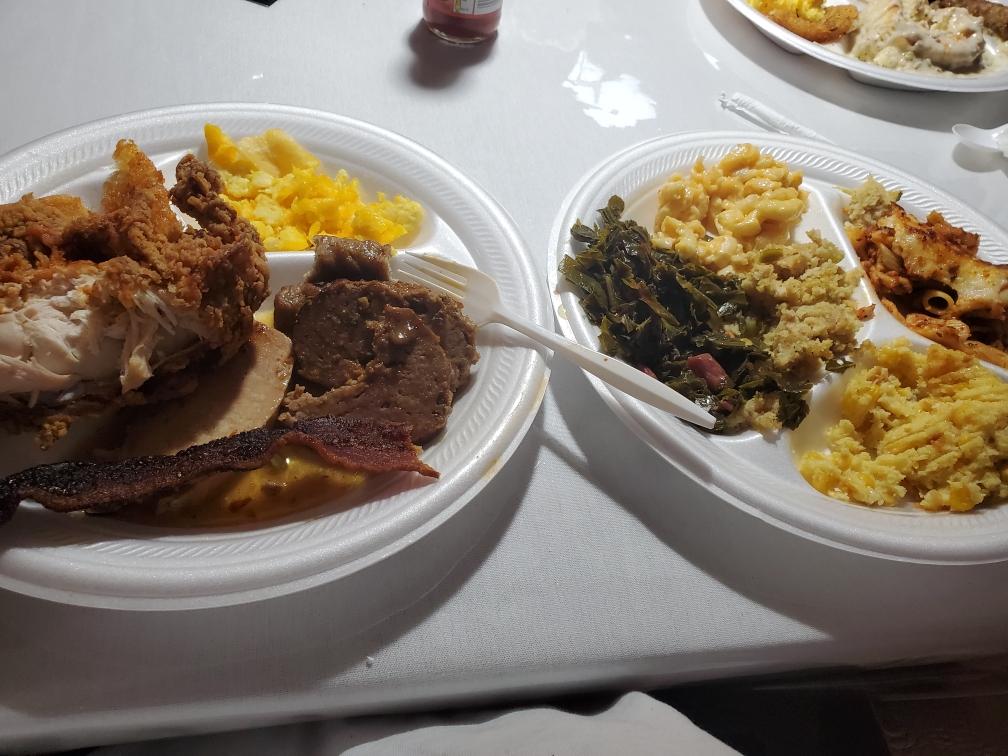 Desert natzi's!!!Food was mediocre at best. Sunday brunch was 24.99$ plus tax for all you can eat with hidden one desert rule. I had to find out the hard way. Apparently you can only have one desert per person. It said all you can eat. I barely ate ànything because it was cold. Maybe it would have been a little bettter if food was hot. The sweet potato pie is best thing they have going. I felt like a kid being scolded over pie fiasco! So what I had 3 pieces. I didn't really eat anything else. They should tell you that when your paying for food. Instead of being desert shamed at the table over pie. I couldn't believe she said that. The waitress gave me the third piece as if she was doing me a favor. I thought I paid for it. It's not like it was free. I know they talked about me like a dog in back all over some pie. I spent over 24.99$ plus tax for cold, bland not so great food. I will not be going back. There is only tea and lemonade for drink options. I was damn near afraid to ask for a drink refill lol. Maybe there was a hidden limit on that as well. One per person desert rule. The staff was nice though. Our waitress was nice even though she pie shamed me. How f--king embarrassing. I am a grown a-- women eating pie!!! Nothing was even worth eating to me, except sweet potato pie!!!! It was after 1pm and I was hungry. I wanted to enjoy something for the cost we paid! How lame with desert limit!! That's actually pretty petty, desert natzi's. We laughed about it. It was funny, but not funny. I like desert and it's not a crime. It's only a...