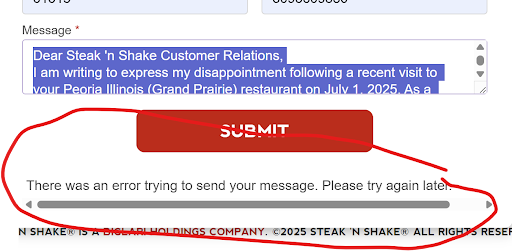 Read moreI grew up on Steak N Shake my whole life but everytime I go to this location it's extremely sub par service, short staffed, very long waits, and orders never correct and have to ask and remind about your order multiple times. Completely understand in the food business sometimes you are short staffed or an unexpected rush but this is now the norm at this location. Poor management for sure. Yesterday we were there for over an hour and a half with a party of 5 at 1pm. There were 2 waitresses working the entire restaurant and they had to make all the milkshakes themselves and it took forever. They were completely disheveled and stressed understandably as it wasnt their fault they were short staffed but the quality of everything is pathetic. Our food sat at the window for over 10 minutes before it was brought to us. And was luke warm at best. The milkshakes took over 30 minutes and were made poorly and incorrectly. Never recieved chili orders and took 10 minutes to get it taken off our bill. Further insult to injury had to stand and wait over 10 minutes to pay for the disappointing meal. Hire more staff. Step up the management. And for the love of God have a designated milkshake crew. For a place that is known for their milkshakes it's a cluster everytime to get one correctly and within a decent timeframe. Half the time we have to get it to go because it finally arrives after we are almost finished with the meal. I will be calling corporate and will no longer visit...