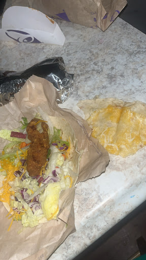 Read moreNice Taco Bell. See pictures. Lacretia (I apologize for the likely misspelling) who waited on our party of two who very pleasant and helpful in getting exactly what we wanted, exactly how we ordered it with several changes. Taco Bell needs to hold on to employees like her! Food was hot and quite good, appealing to sight. I was disappointed there is NO Senior discount, or Senior drink, or Senior anything. Only the 2nd Taco Bell I have ever visited with no 'special' for Senior citizens. (The other is in Washington, IL) Food was prepared very fast. There seemed to be adequate staff except for the lobby. The cashier/order employee was in charge of both, an impossible task. Thus we could only find one table clean. Tables and floor both needed attention the 30+ minutes we were there. The second entrance into the building which had a handicap parking space had no ramp access unless you walked around behind another parked vehicle...too far and unsafe for my 88 year old guest using a walker. On the positive side, the second door provided access directly to seating which was greatly appreciated. I rated this Taco Bell a 4 of 5 stars. With a little work the potential is there...