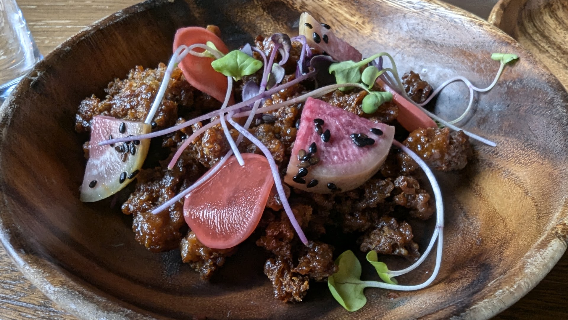 The oyster mushrooms did not seem like mushrooms. Just over fried and over salted batter. If there were mushrooms in the crispy batter, they were completely unrecognizable.