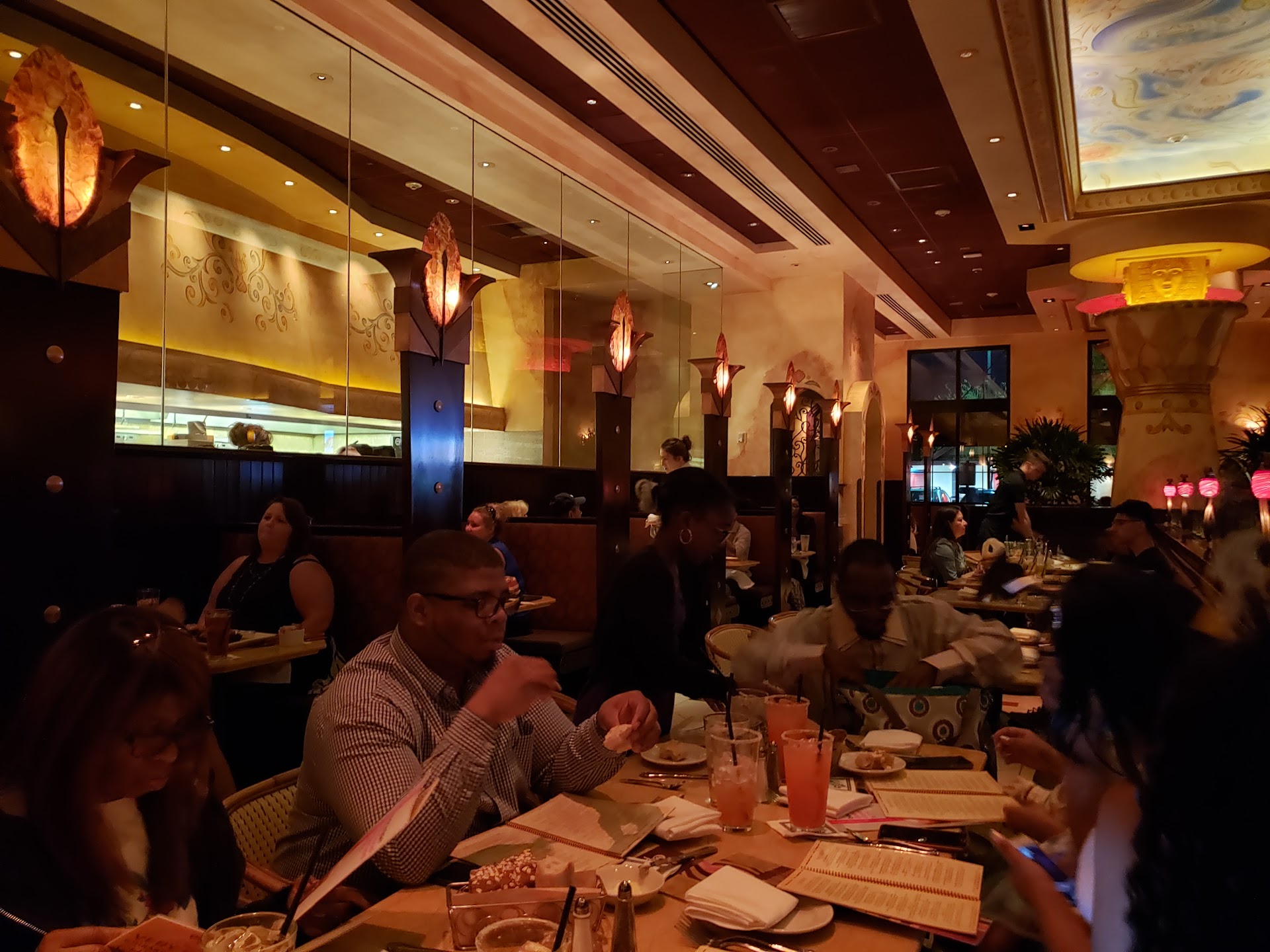 The decor is the standard cheesecake factory setup which consists of dreary (not romantic, dreary) lighting, middle of the road tables, chairs, etc. The Cheesecake factory seems to be trying to imitate an upper class dining experience, but as the prices suggest, this is middle-class fare. I mean even the filet mignon is only $30...