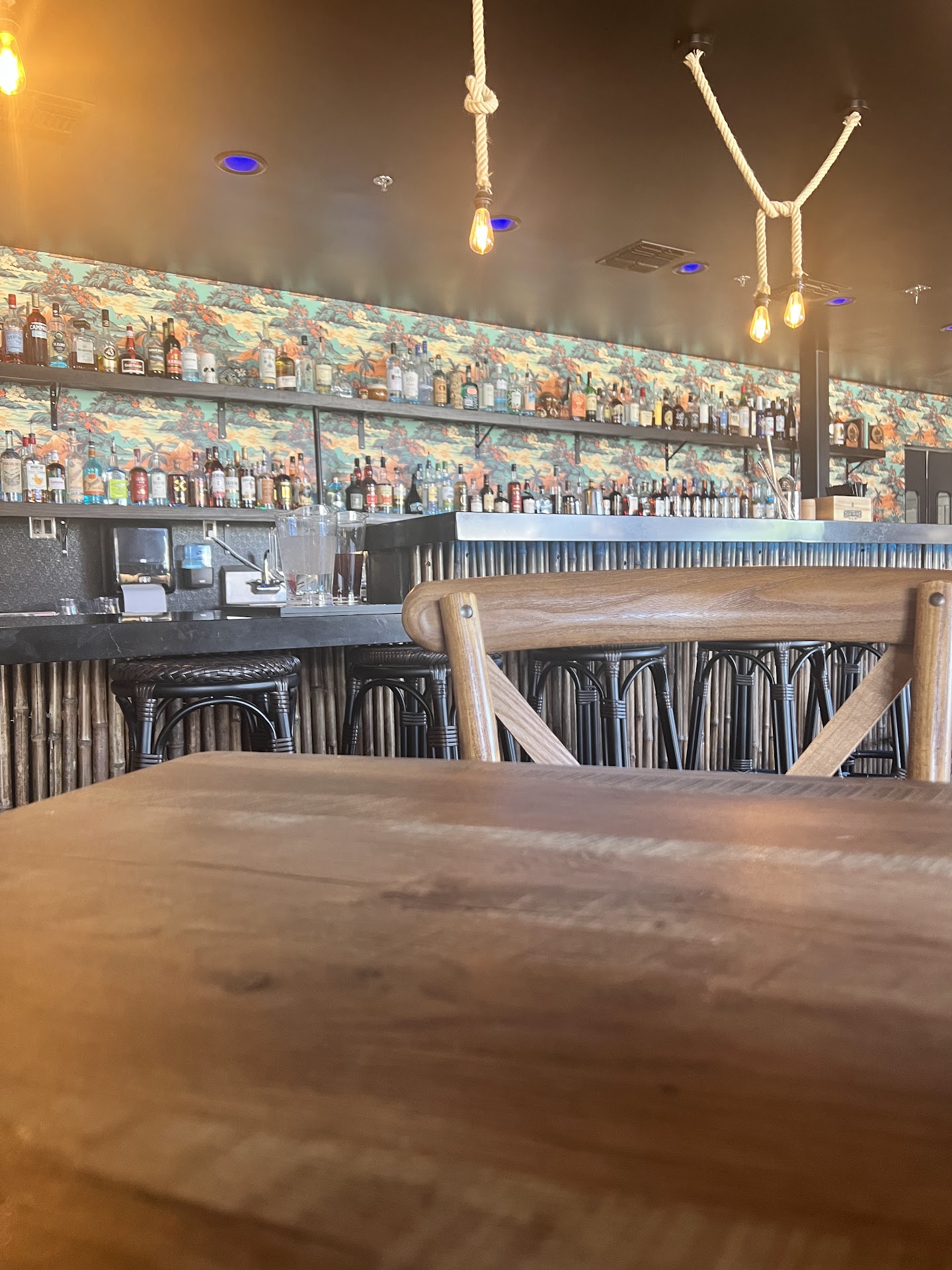 Iāve been wanting to try this place forever and we finally were in the area this weekend so we stopped in. I was so surprised to see it nearly completely empty, but it was around 4 on Sunday. Definitely a weird time for dinner etc. we were greeted right away and waters brought to us while we decided what weād order. Weād eaten earlier so we opted for some type of appetizer and finally settled on the potstickers. They recently updated their menu a bit we were told so if youāre looking at it online it doesnāt seem to show the new one. The sauce for the stickers was a type of hot sauce and it along with the potstickers were amazing! Iād definitely like to come back and try out more full meals. The food here is described as a mix of Polynesian and Asian cuisines. Itās a scratch kitchen. I really love the concept. For the drinks they serve only cans/bottled beers here as well as mixed drinks. The mixed drinks are what seems to bring people in. I wasnāt sure what to get so I told the bartender what I liked and he recommended the Halo Halo I believe is what it was called. I typically donāt care for ube, but he assured me heād make it to my liking. He was so correct. It was delicious. Iād definitely order it again. The vibe is cool. Decor is great. The place is quite small though. It does have a small patio area as well, but on a busy night at park-west I could see it hard to get in. I was off put by the restrooms at first because there was no sink inside the bathroom and questioned where a cool would wash their hands, but realized quickly it was right outside of both bathrooms for a more sanitary option. Great idea. A few other bars we go to also do this. All in all Iād come back. This place has...