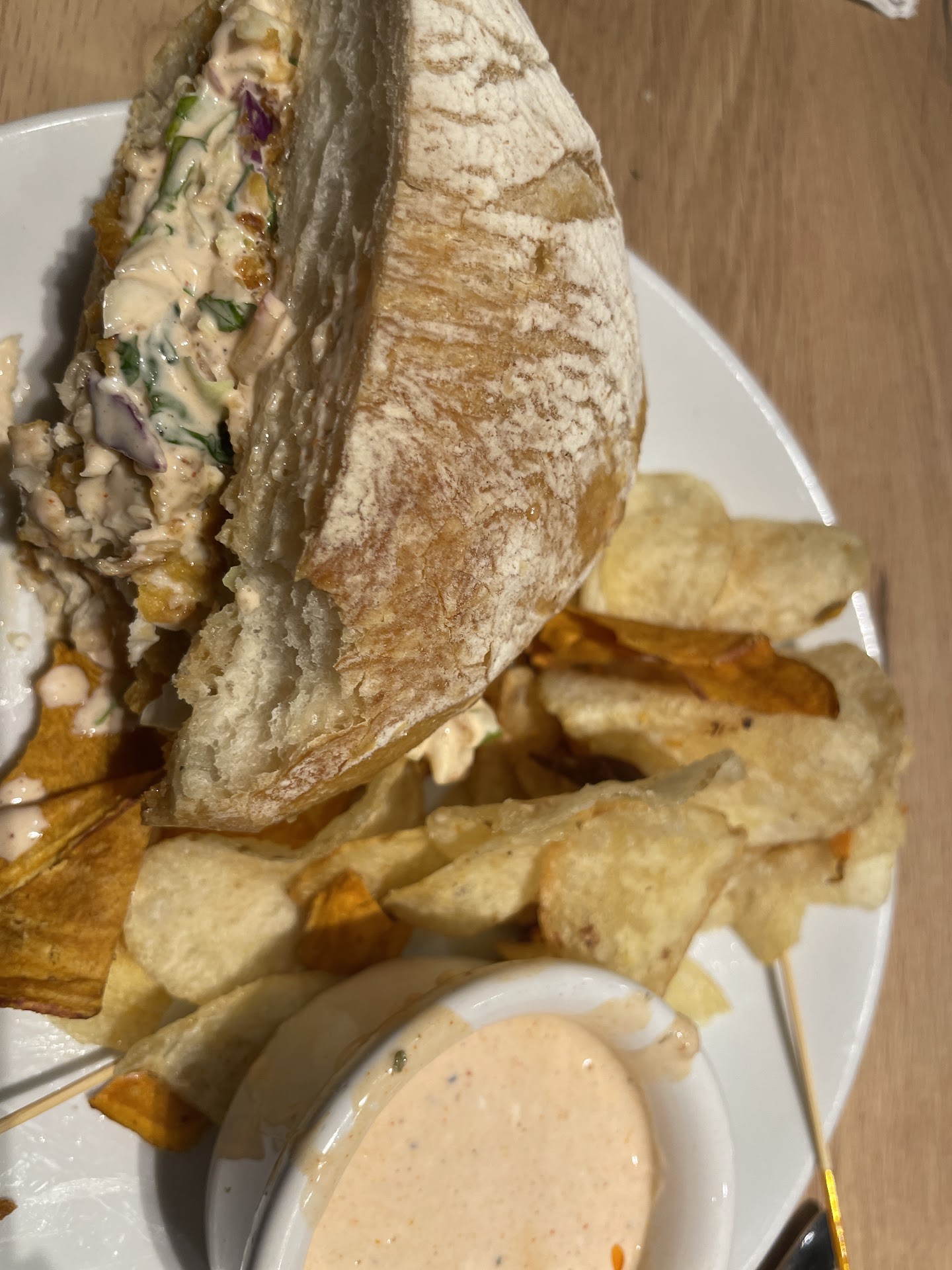 Read moreWildflower bakeryâs service is on point, the staff are friendly, attentive and do a good job at maintaining the restaurant clean and neat. The plates that I had are the Salmon Alfredo, and the breakfast chipotle sandwich which were delicious. The previous experience is contrasted by todays food choice. I chose to get the buffalo chicken sandwichâŚabsolutely poor choice I donât recommend it. It is served with chicken strips are flavorless and the coleslaw overpowers any flavor of chicken or buffalo. The bread seems to be a ciabatta but it was extremely chewy and did not have much flavor. I would have preferred the bread that is served with the breakfast chicken sandwich. Lastly, this sandwich was terribly salty, absolutely not my choice. Donât make the same mistake by ordering this sandwich that is currently being advertised and New. Overall, from past experiences I would still comeback and recommend the restaurant, but not this sandwich. They have many other...