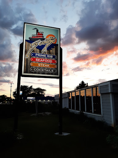 My boyfriend wanted to take me out to a nice restaurant for my birthday while we were vacationing near Ludington, so we thought we'd try Scotty's because a friend had recommended it. After we placed our orders, the waitress asked if we would like some dinner rolls (they don't automatically come with your meal). They were extremely hot but not at all brown, like they weren't done baking, and collapsed into a wad of dough when we tried to tear them open (after waiting for them to cool off enough to touch). My date had the spinach salad and he said it was very good. He also added a sirloin steak, but said it was tough, and he only ate about half of it. I asked for the classic whitefish, but was told they were out of it, so I ordered the Parmesan crusted whitefish. The fish was good and a large portion, but rather bland. Very little crust, and the caper sauce it was topped with didn't have much flavor. My choice of side dish (you only get one) was the seasonal vegetables. When I asked what they were, the waitress didn't seem to know. She said it was a stir-fry of several fresh vegetables. What I got was a small dish of grilled (not stir fried) zucchini, yellow squash, and a few strips of red peppers. They were good, but a small portion, and not as she had described. The waitress brought our check midway through the meal, and didn't ask if we were interested in getting a dessert. Overall, we were not that impressed with our dining experience at Scotty's. It was okay, I guess, but not enough to make me want to go there a...