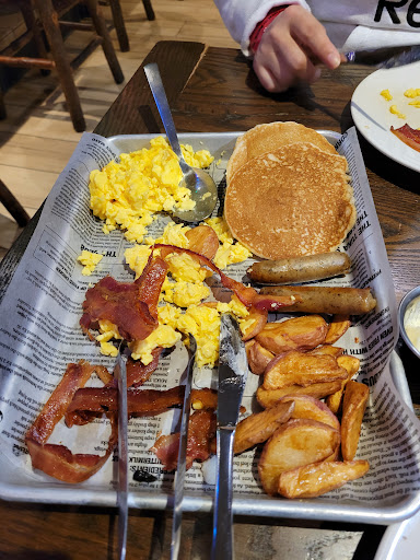 We mistakenly ate here for dinner. Table was dirty, food was not very good, staff all looked unhappy and, our server was not attentive or friendly. We had already purchased a breakfast family meal and we were disappointed even further. Our buffet plate was served with a piece of our server’s hair. The eggs tasted like powder and the pancakes tasted like rubber. Multiple times we saw staff carrying food plates awkwardly so that their fingers were in the food or their face and hair draped over it. During both visits there were two young busser girls who spent most of the time staring at guests when they could have been wiping down tables/menus, refilling water/coffee or doing something other than making guests feel uncomfortable. We ate here for convenience but were so disappointed. The management obviously is not concerned about service, the quality or their food, or cleanliness. Don’t make the same mistake we made! Avoid...