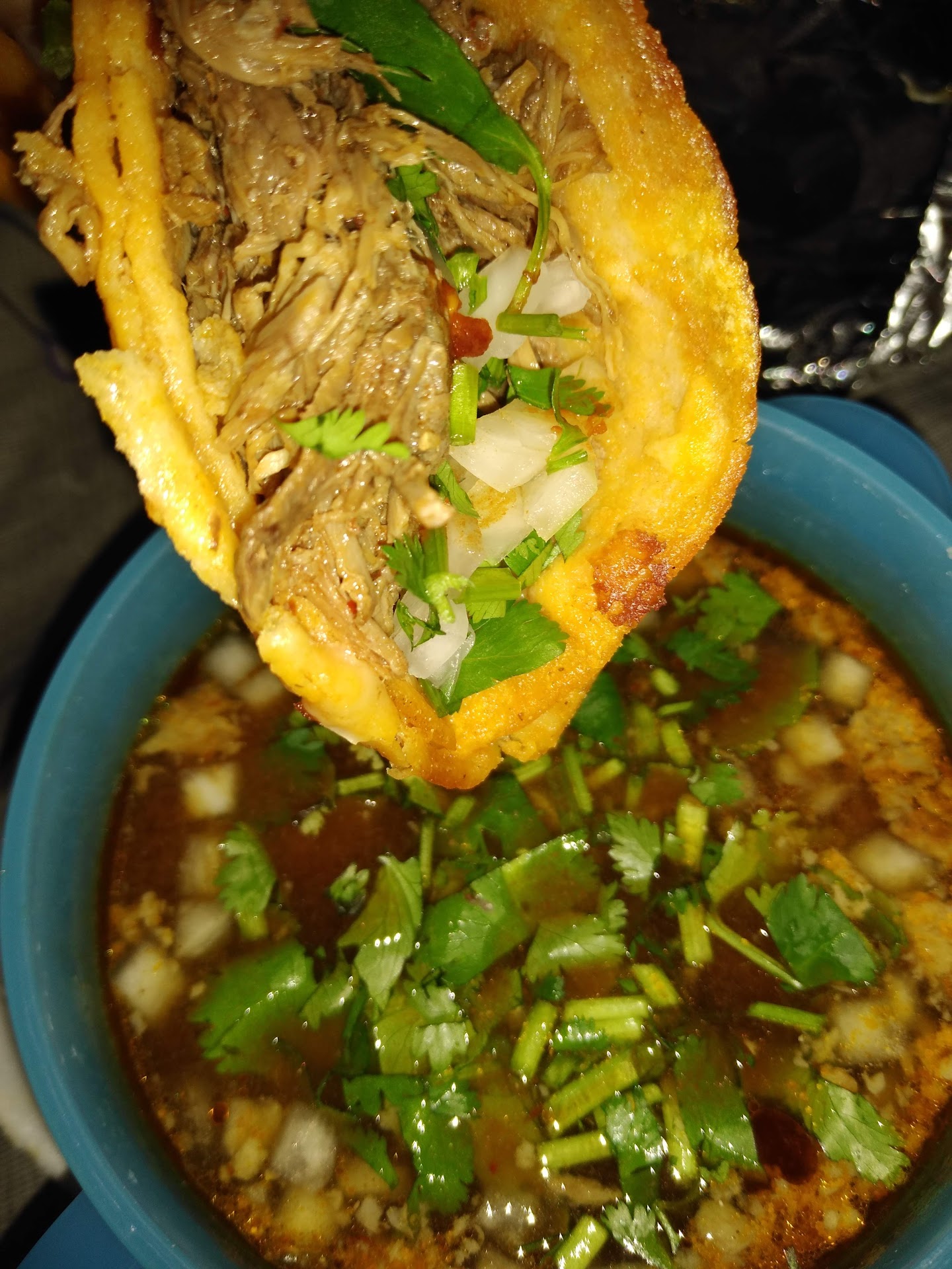 CAME ALL THE WAY FROM HEMET CASHIER WAS NICE, & FRIENDLY WE WERE GREETED WHEN WE ENTERED. THE BIRRIA IS BOMB YALL! DIDNT GET TO TRY THE COSOME BUT THE MEAT WAS LITERALLY DRIPPING FROM IT JUICES SO IM SURE ITS GOOD THE SALSA IS A CREEPER, VERY GOOD & THEN BAMB ! SPICY GOODNESS ! LOL. YOU GET THE COMDIMENTS ON THE SIDE WHICH I LOVE BULID YOUR OWN TACO PRETTY MUCH LOL I GOT ONE MULITA (SANDWICH TORTILLA WITH MELYED CHEESE & MEAT) 1 QUESATACO (MELTED CHEESE DOUBLE TORTILLA & MEAT) 1 TACO DORADO (CRUNCHY FRIED TACO) THE MEAT BOMB! THE TORTILLAS BOMB! THE CHEESE EHHH NOT FOR ME IT TASTED UHM NOT CHEESY? & THE TEXTURE WAS VERY GOOEY LIKE IDK I KNOW THERES SHORTAGES HAPPENING ON CERTAIN PRODUCTS SOO HOPEFULLY IT CHANGES ANYWHOO.. CILANTRO & ONION FRESH GOOD PURPLE RAW ONION IN SOME SORT OF MARINATE BUT THEY ARE TASTY UNFORTUNATELY THE LIMES IM SURE COULD BE FRESHER MINE WERE ROTTEN LITERALLY A BROWNISH YELLOW YUCK I LOVE LIME ! WITH MY TACOS , THAT IS THE REASON FOR THE 4 STAR COULD BEEN A 5 FOR ME MAYBE NEXT TIME! JUST CHECK YOUR CONDIMENTS! YALL...