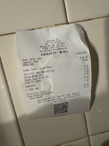 Read moreThis originally started July 31 2023, I sent my husband to get taco's per the request of our birthday boy after football practice. We had guests over or I would have gone myself, but anyways he ordered 1 fiesta pack with crunchy shells 3 no cheese and 3 regular and 6 green burritos 3 no cheese and 3 regular, he then orders another fiesta pack with soft tacos 3 no cheese and 3 regular and 6 red burritos 3 no cheese and 3 regular the cashier goes to repeat the order back and it was wrong. My husband stopped him explaining again what he wanted still wrong. Another person comes over and still had to explain a couple more times how we he wanted the order the man got rude and asked if that was it. My husband no. Tried to finish the order and got to the window re-explained the order again only to find out they got the entire order wrong. Called the next morning and thought I spoke with the manager, but now not so sure. She said that if we brought in our receipt that she'll replace our order. Gave her my name and went in today and nothing. The person on duty said no note was left and couldn't do it wouldn't do anything about it. I was excited to move back to southern California because of del Taco only to be repeatedly disappointed in this store! This store is convenient for a quick stop, but I will not be going back to this one. I'll go out of my way and go to the one on 4th. Always great service and...