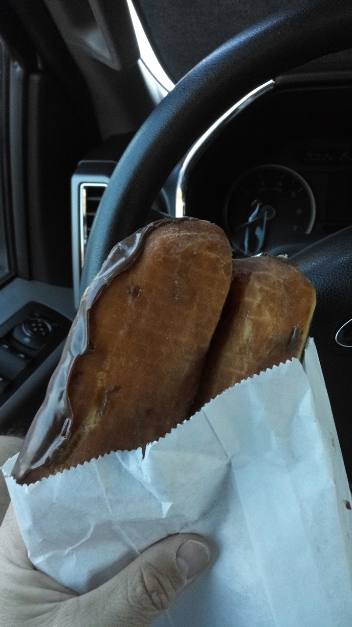 So, I walked to the Hwy 74 stoplight (if crossing at the one a block North, better have your Will/Testament filed) to go back to the train station. When directly across, I saw a minivan pull up.. and walk right in. I could see the large pink box being folded, for filling: then, out he came. Gee, I guess she just assumed my three-donut purchase wasnāt worth her time. (A Simple Fix: SWITCH your sign, TURN OFF your Neon FIRST!!! Got that?!!?)