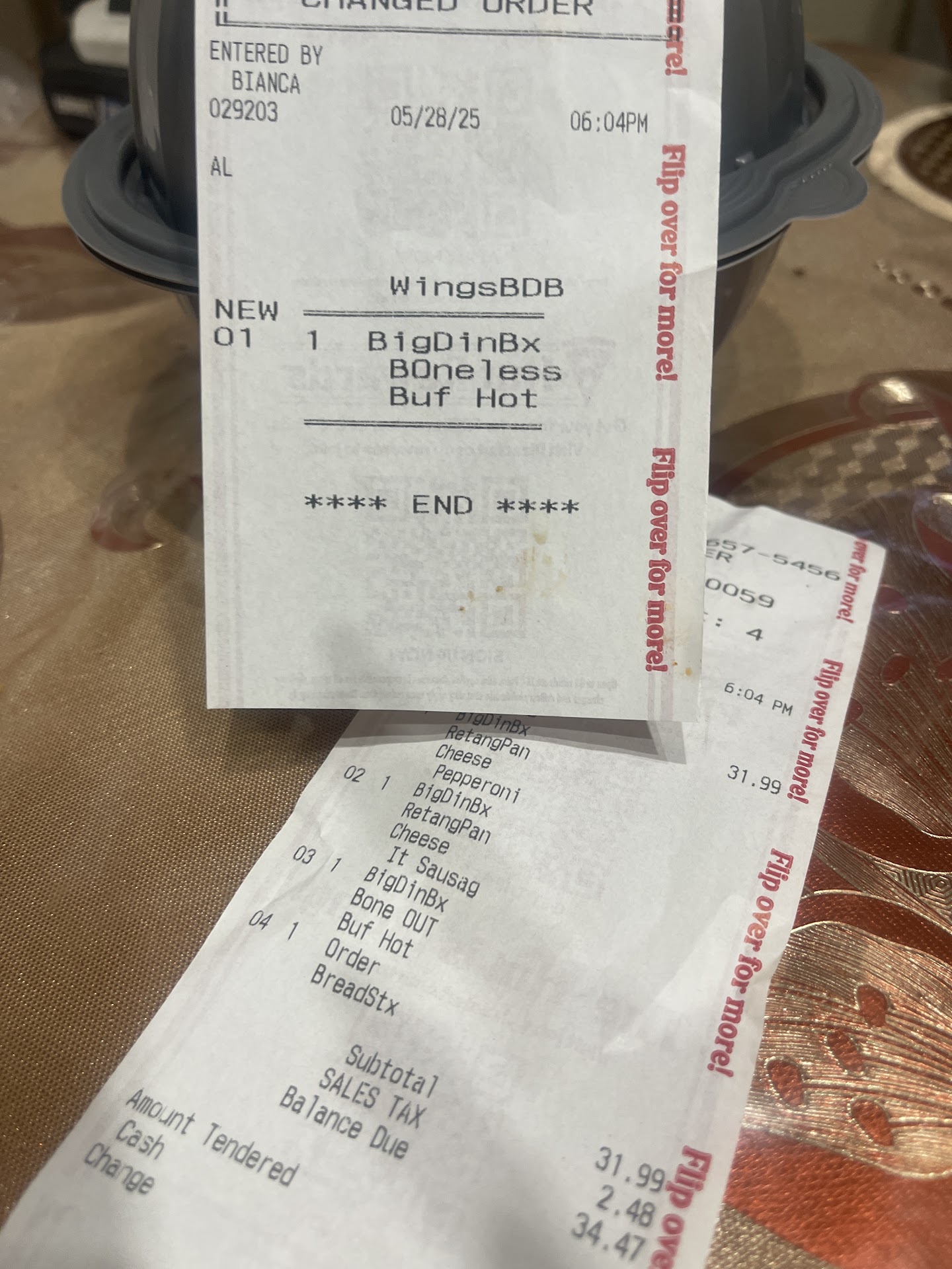 Read moreI was in there at around 6 pm. It was good up in til they forgot my hot wings. I got my pizza, which was great. 10 minutes after I got it I went up to the lady to ask about my wings and she said "give me a minute". So I went back to sit down and waited..... Waited some more... While she walked around... Walked some more and got herself a drink as well and she walked some more. Then she stood at the register for a few minutes... THEN she decided to come to me and say "can I have your receipt?" I said "ummm sure." She could've asked nicely. But you can't expect everyone to have manners or be polite. Then I asked for my ranch that I PAID for and another lady took my receipt. One question.... Why don't the people who make the pizzas wear gloves? I seen them clean their hands on their shirts, touch their hats, touch the register and pens that people use to sign with.... Its disgusting!!!!!...