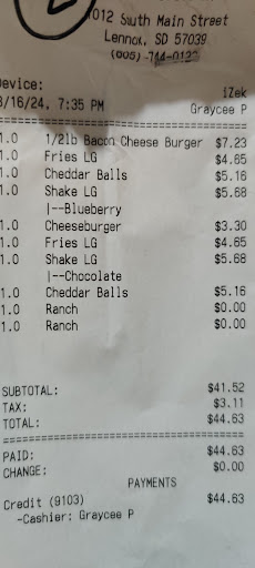 Read moreSo I'm disappointed that you can call them and get an order taken online and no one answers and now I just one time did I call I called five times and a friend of mine called once we're sitting next to each other then she gets there they give her the Banana Splits before they give her the meal so if you're not going to answer your phone's don't put it on the web that you will I also called the Google number too and it rang and it would just ring until it got tired of ringing and it told me the wireless customer is not available so the food was Fair but the service was not what I would say for a small town would be and for the price that I paid for this for the small is not up to it because I have ate at small towns before and they were very good...