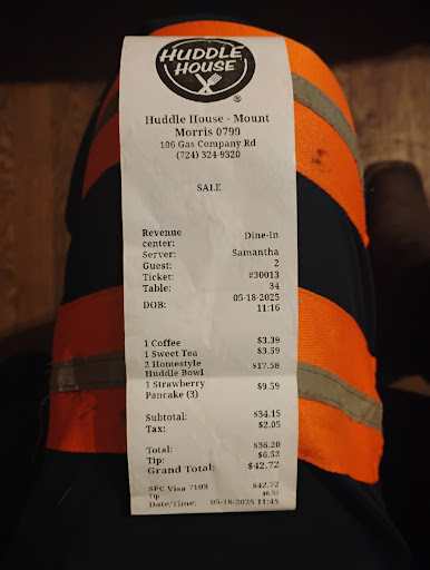 Read moreThis place is and was a great place to eat at one time then things started to change as they took things off the menu and raised the prices as I was sitting their waiting on My food I was chatting to the guy next to me as the manager walks by and takes money from the safe not only has she done this but this has happened multiple times as she takes that money and plays the gambling machine's next door at the bfs not only that but she is also very slopy and can't cook a burger to save her life mean while she's high on pills so my point is I'm really disappointed in the atmosphere that the huddle house has gathered over the last year going through manager after manager and not making a difference all they do is hire the next person who walks in the door I think they alt to get a deeper understanding about the problem people that they keep allowing to work their I was hoping it would get better but sadly it hasn't come on huddle house owners wake up and smell the coffee I have so much on that restaurant I could have it shut down faster then a person could blink and eye but I love eating their just wish yall could get yalls stuff together so us local people can come to a nice place as it once was it has really poor management and that includes charity as well have a nice day and maybe just maybe yall can...