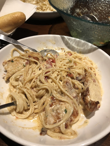Read moreNever had a bad experience here. We'll always go back. My daughter and I enjoyed a mother daughter Valentine's dinner- might make it our tradition. Edit- went lastnight and our meals were not very good. We mostly ate our breadsticks and salad which were good. The service was lacking from the time we walked in the door. Young adults "working". They did not greet us or even speak to us until they finished their story to one another. 🙄 they were very unprofessional. We arrived at 830pm. It took 10+ minutes to take our drink orders and the server was not thorough on taking the orders. The staff was just not at all what Olive Garden used to be. Our server was a sweet older woman who became our friend though. We exchanged some stories and my daughter drew her a picture. She left an imprint on our hearts, thats for sure. Overall, this 35 and 6 year old weren't pleased with our main courses, at all and the staff thst we dealt with were very blah. Edit: visited our local OG Friday night. They did not disappoint 🙌 food and drinks were on point, so hot and delicious. The staff at the door is still lacking in doing their part but...