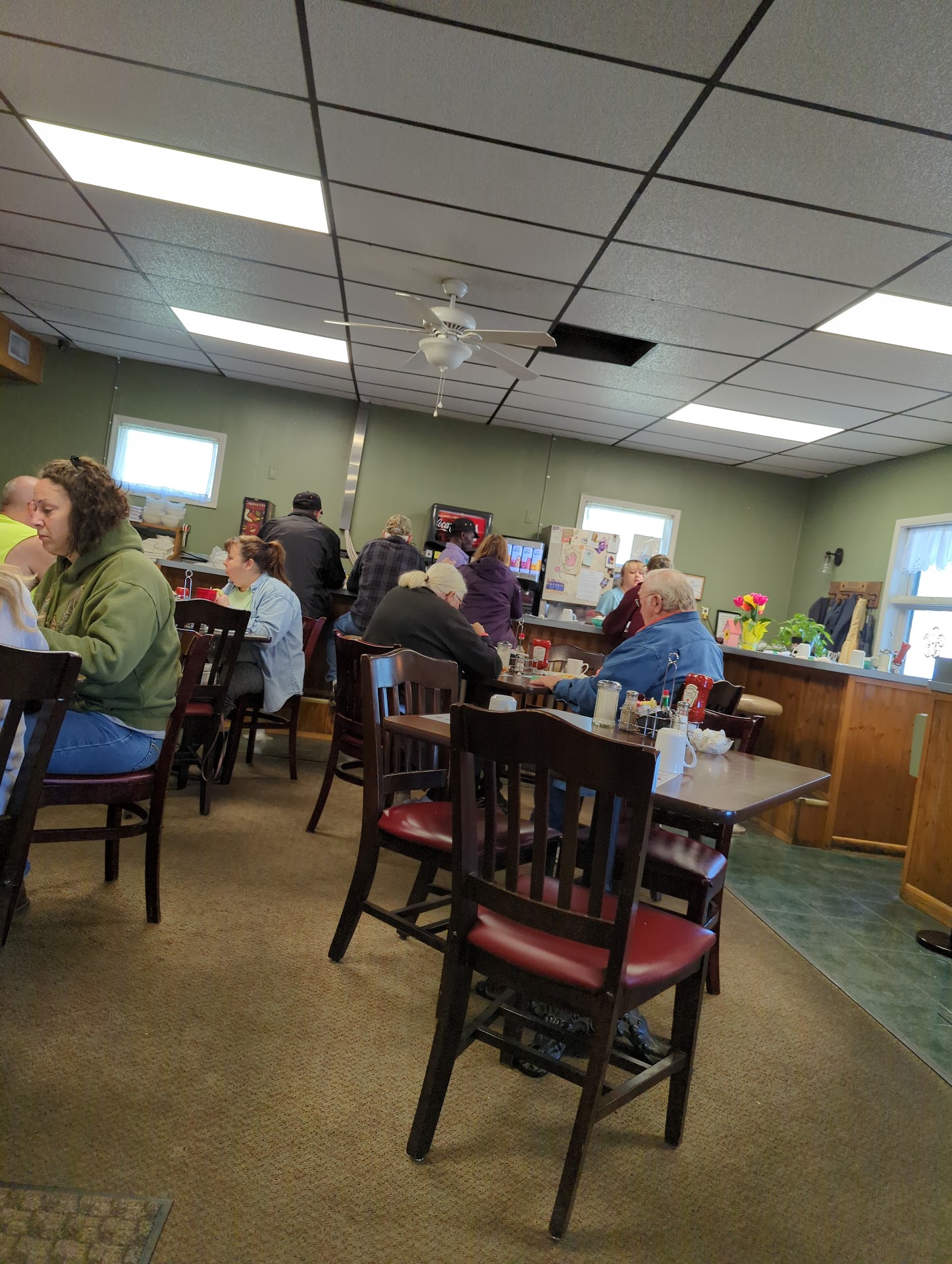 Read moreOMG, our plan was just to stop in for coffee. We ended up having breakfast for dinner, sharing a big piece of cake, AND having 2 cups coffee, while enjoying fun conversation with Annie and her daughter. We'll ABSOLUTELY be coming back here! The atmosphere was completely welcoming, the food was hot, fast and tasty (eggs jist how I love them) and the coffee was hot and FRESH! (A new pot of regular was brewed up when we ordered. This place is a gem! There's some community boards advertising fun local activities- plays, bazaars, fairs, etc. We saw one of the specials being served, and there was a full cob of corn delivered with it. I bet it was local and fresh, as someone was advertising selling corn by the dozen on a sign. Loved this diner! Ooh- theres also a super cute sunroom...