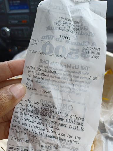 Read moreFood was delicious but the service leaves something to be desired . Ordered online the other night(Fri) . When I got there and pulled up to the window , I told the girl (Chyna?) my name and that I was there for an online pickup . She hands me a bag , says have a good night and proceeds to close the window . I said , I'm missing the drink . She says " what kind of drink ? "Seriously ? IT'S ON THE RECEIPT !! I tell her and she goes to get it . Look in the bag and there's no chips or brownie I ordered . I tell her when she gets back with the drink and she says " what kind of chips ? " ......Seriously ?? IT'S ON THE FREAKING RECEIPT !!! LOOK AT THE ORDER!!..... Point is , it is the employees job to make sure that what the customer orders actually makes it to the customer . They weren't busy by any means , just lazy and nonchalant in their duties . If she(they)(whoever's job it is) would have read the receipt or the order , she/they would have known I had a drink and what kind . She( they)(whoever's job it is) would have known I had a brownie and chips and what kind . If you're gonna come to work , don't be lazy . Come to work to do your job or go the hell home . Don't know the owner but he is an Army Vet and I have much respect for him because of that . I know for a fact( because I'm a vet too) that laziness would not fly in the military . Firehouse is nowhere near military standards obviously but sounds like he needs to tighten up his squadron before it loses him business . No real harm to me , just aggravating that she/they didn't do what she/they were supposed to do . Please check your bag before you leave.....You're liable to be...